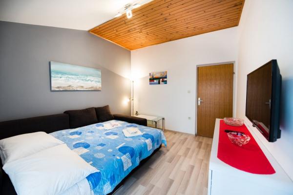 Beautiful view, neat apartment with all necessary amenities, friendly hosts always at your service. The sea is five minutes on foot, and the only complaint is that there is no shade on the beach, but there is another beach a little farther that has enough shade. The period when we were extremely calm and we were really on the right vacation, away from the noise and stress.