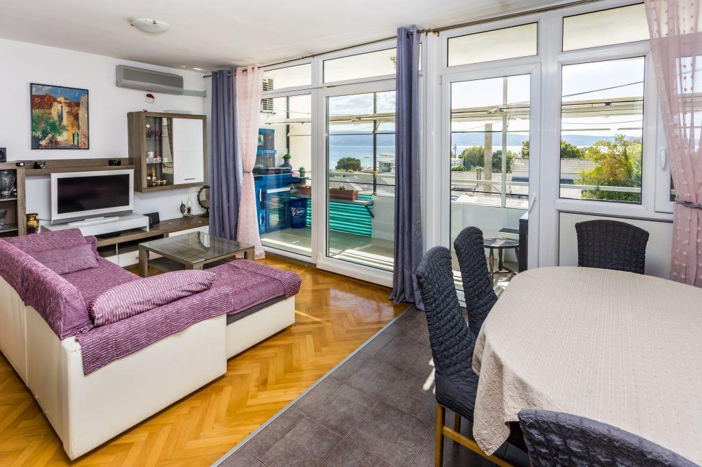 The apartment is located in the very center of Omiš and is located first row to the sea with a large sandy beach. The city center is only a few meters away, as well as restaurants, markets, pharmacies and all other amenities. It is also located near the Cetina River, so all the activities you can take advantage of are available to you (rafting, kayaking, zip line, quad tour, boat rides...). Parking is located near the building on a public area and costs €20/week. The apartment is spacious, has 3 bedrooms, a large living room with a large sofa bed, 1.5 bathrooms and a terrace. It can accommodate 7 people.