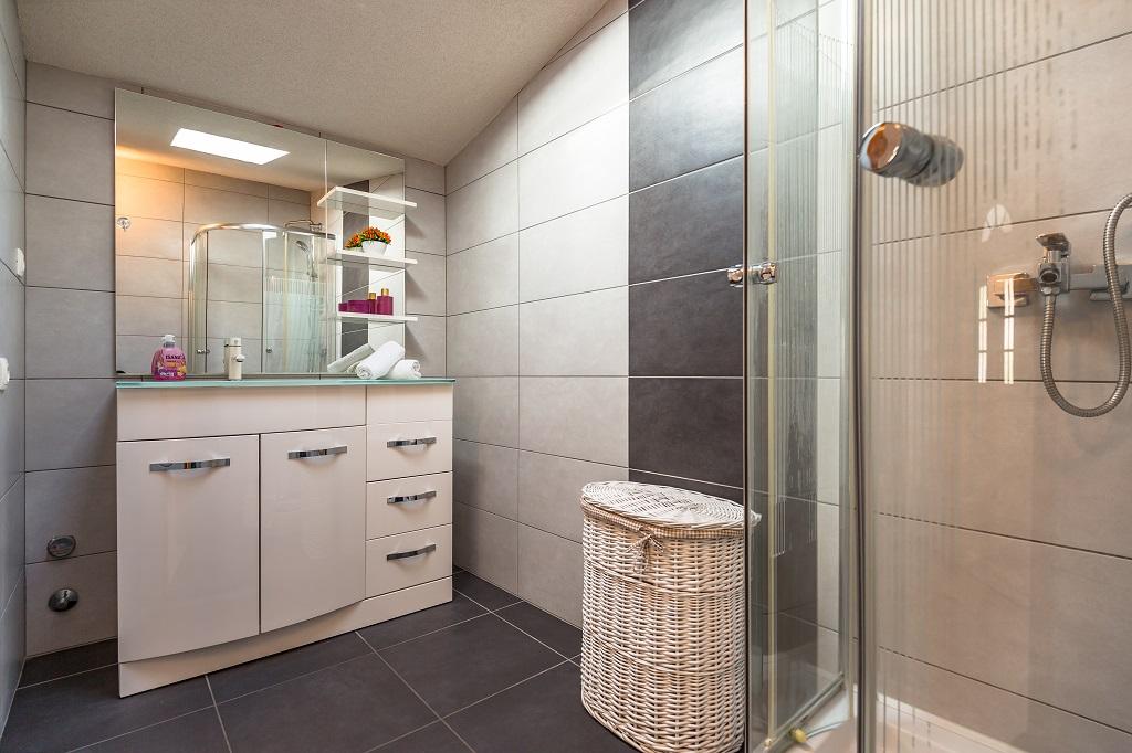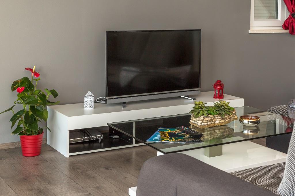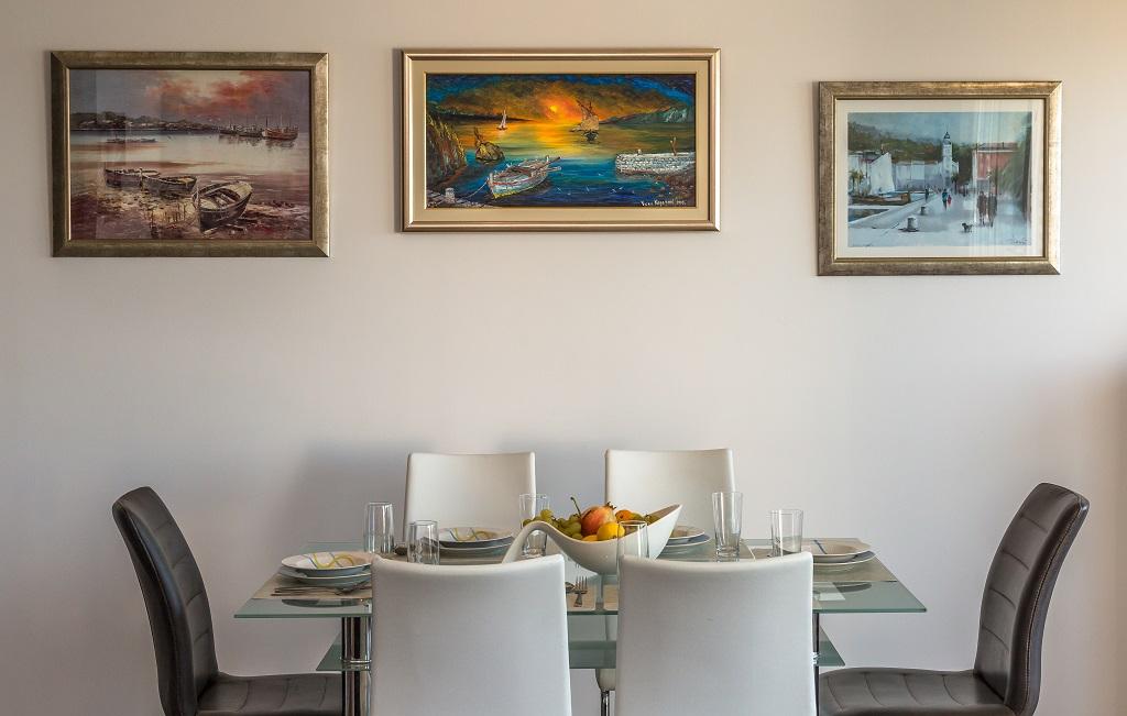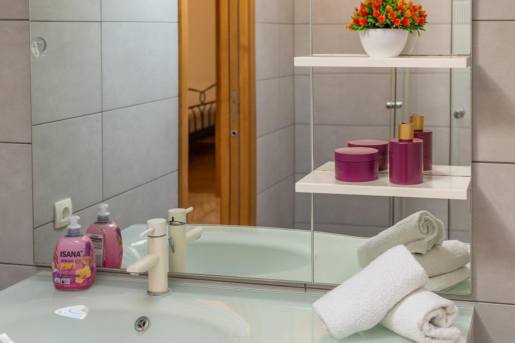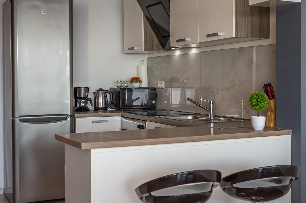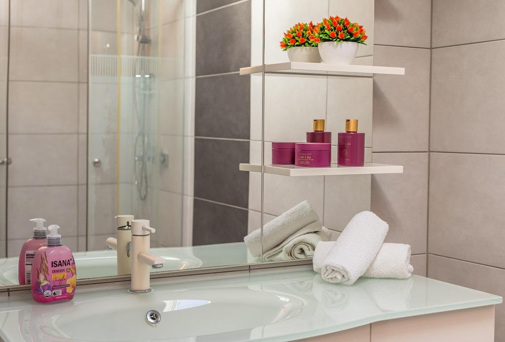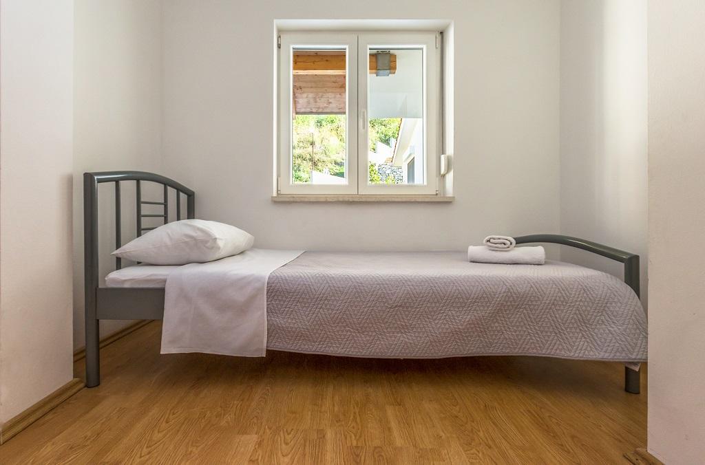 NEW AND MODERN APARTMENT. The apartment is located in a private family house with a view of the sea, islands and local beaches. Near the center of Omiš, only 500m away. Everything is brand new. The apartment has 95 m2. It has 3 bedrooms, a living room, a kitchen with a dining room, a toilet and an additional bathroom, a balcony and a parking space in the garage. Bedrooms: One room has a large bed (180 x 190) for 2 people. The second room has a French bed (160 x 190) for 2 people. The third room has a single bed (90 x 190) for 1 person. Bathroom with sink and shower. WC with sink and washing machine. The kitchen is fully equipped. The living room is spacious. Large balcony with seating.