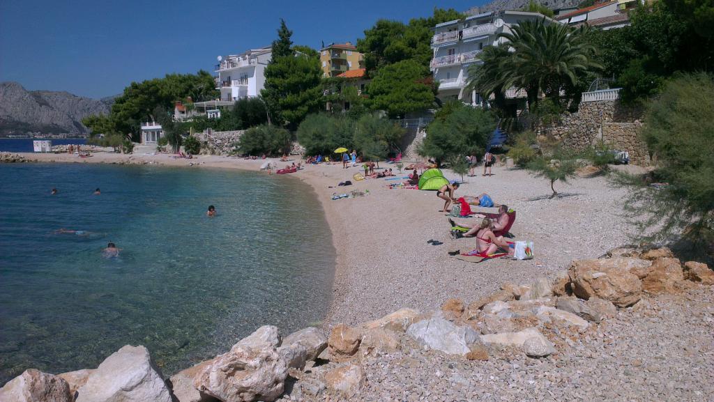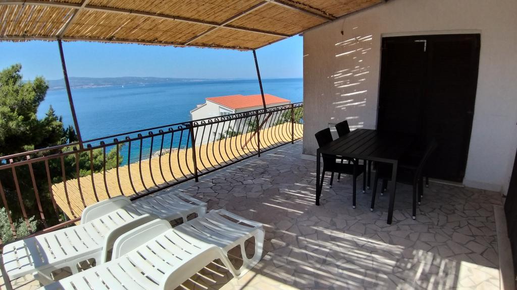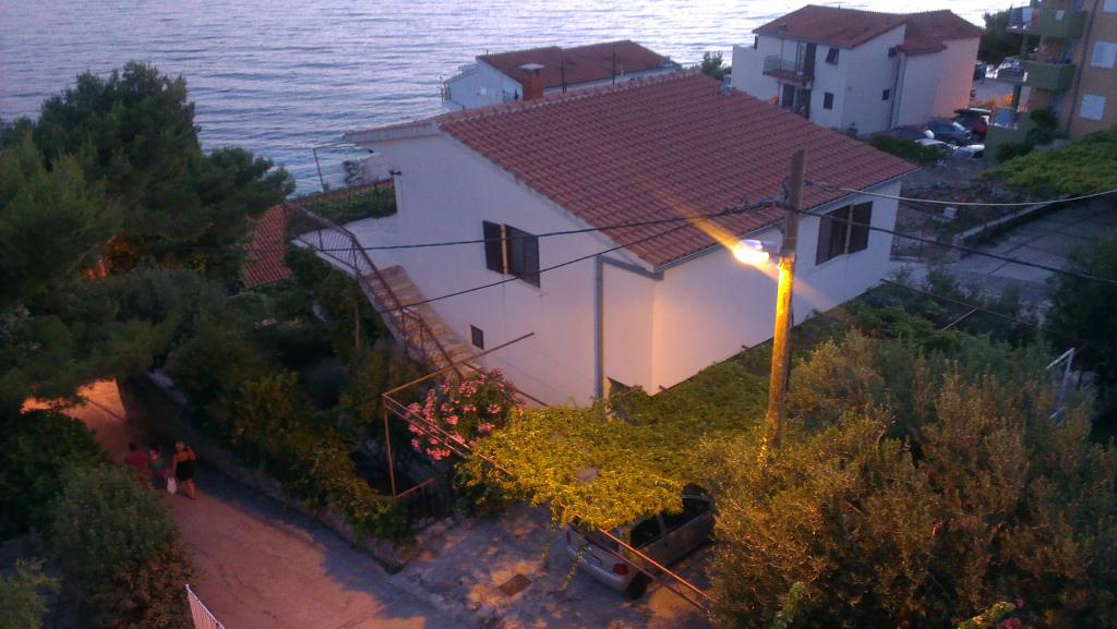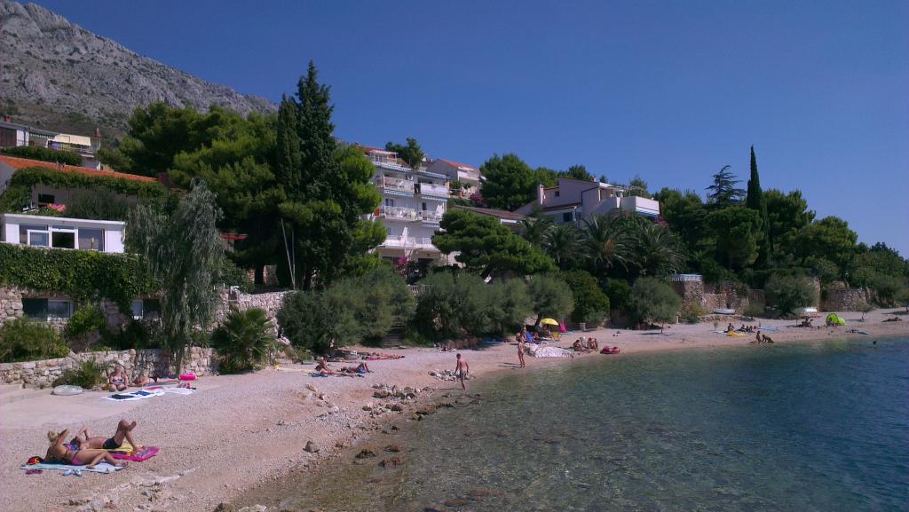 Dear guests! We have available 1 A4+2 apartment (68 m2 30 m2 terrace) and 2 A2+2 apartments (32 m2 10 m2 terrace) for a total of 12 people. All apartments have terraces with a table and chairs and a view of the sea. The house is located 30 m from the pebble beach. Parking for 2 x 2 cars is located right behind the house. A barbecue for use is also there. A beautiful pebble beach is 30 m from the house. The neighborhood is quiet and the sunsets are beautiful. There are 3 restaurants, a market, an ATM and a bakery nearby. There are fishmongers and butchers for fresh fish and meat in nearby Omiš. We have been at your service for all questions and advice since 1985.