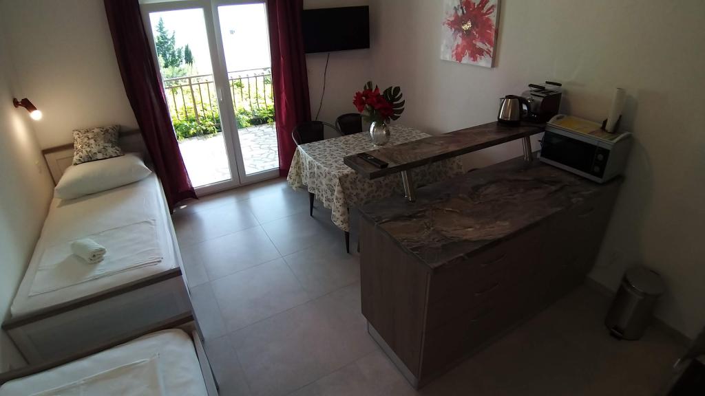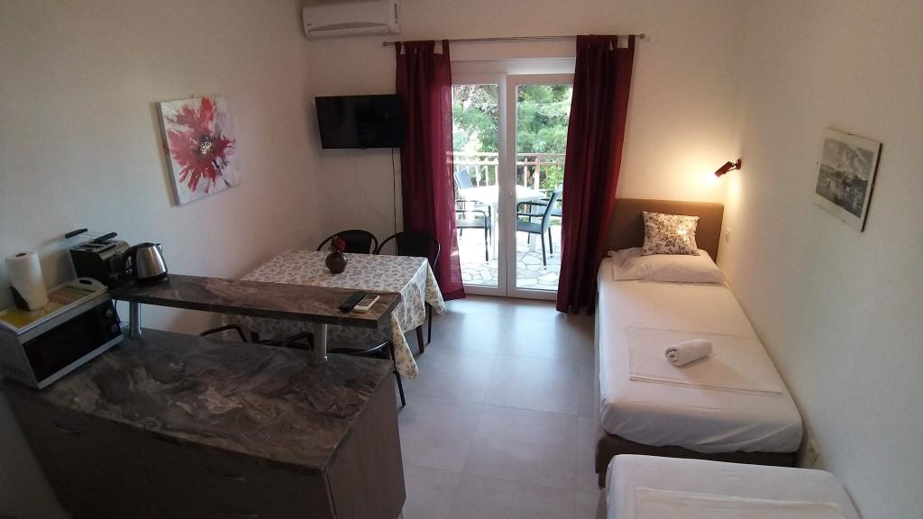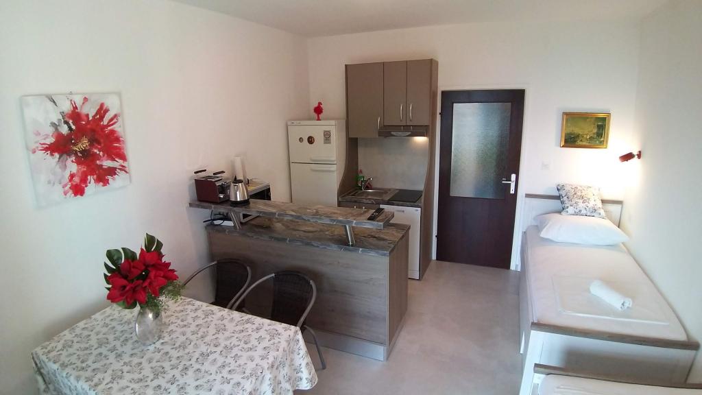 Read more Accommodation unitsCheck in 14:00, Check out: 10:00; MIN 5 nights. Early check in from 09:00/ late check out until 17:00 (if possible) 30 EUR Reservation deposit 25% is non-refundable. Payment: cash, HRK, EUR upon check-in for all agreed days. The price includes: One parking space per apartment (for more, send an inquiry), Air conditioning (fair usage), fees, taxes and residence tax, Wi-Fi. The grill is in the parking lot for the use of 3 apartments 1 set of bed linen and 4 towels for 7 nights included in the price dishes: 3 pots, pan, 6 glasses, 6 cups, openers, chopping boards, cutlery dishwasher, microwave, toaster, water kettle