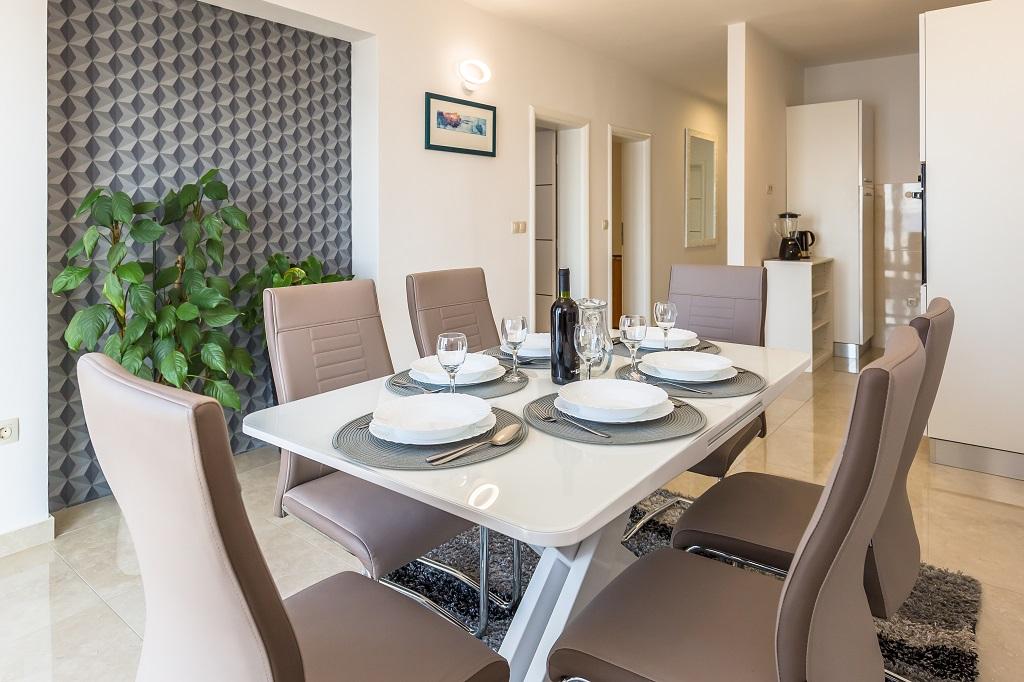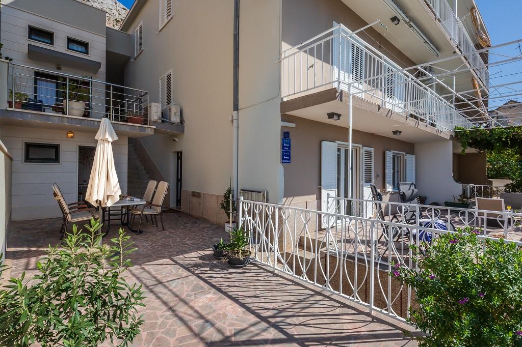 APARTMENT SNJEZANA 90 m2 large apartment. Dining room with table for 6 people. Fully equipped kitchen. 2 bedrooms and 1 living room. In the living room there is a sofa bed for 2 people. Extra beds are available. The bathroom has a shower, washing machine and toilet. Climate. Wi-Fi. SAT-TV. Balcony with a view of the city, the sea and the island of Brac. Private parking is available for 1 car. APARTMENT DRINE Apartment for 4 people. The 40 m2 apartment has two bedrooms. SAT-TV. Wi-Fi. Bathroom with shower and toilet. Fully equipped outdoor kitchen. 2 private terraces. Terrace of 30 m2 with dining table and sun protection, sea view. Private parking. STUDIO TATJANA Large studio apartment of 15 m2 Bedroom with double bed and single bed mini fridge and private bathroom with shower and toilet. Wi-Fi. SAT-TV. Fully equipped shared kitchen. 30 m2 terrace with table and shade, sea view.