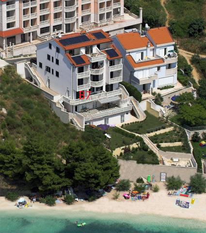 Begic Apartments are located in a building located in a small village Nemiri located about 2 km. from the center of Omiš. The place is ideal for a quiet family vacation. The building is located directly on the beach and can be reached by an asphalt road, upon arrival you can place your car in the garage integrated into the building where your car can be parked for free during your stay. All apartments except 2 have balconies, terraces, vines facing the sea or north depending on the apartment. Directly on the beach is a shared terrace where you can eat, use the grill or enjoy with friends... Under this terrace is a large room where you can leave your things that you take to the beach (air mattresses, rubber boats, umbrellas...etc.)