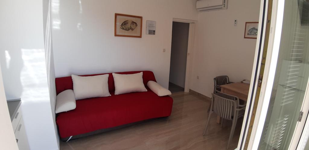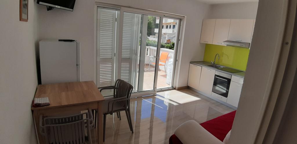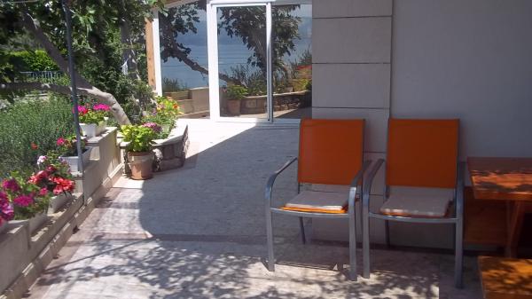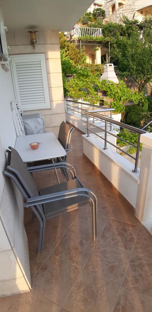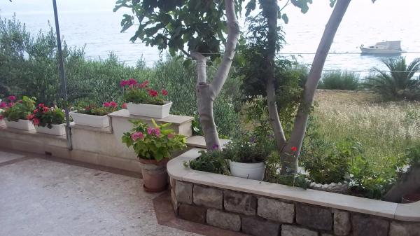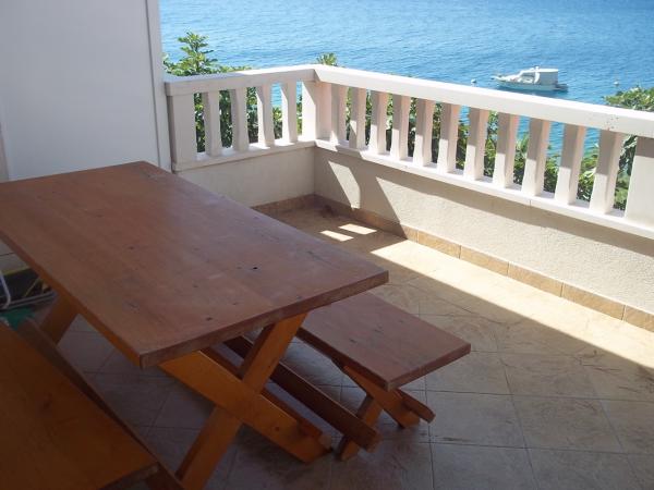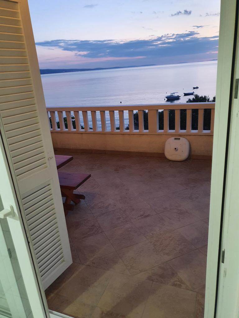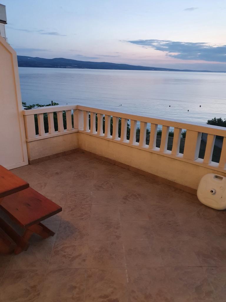 Apartments Kalajzic are located in a peaceful seaside town near Omiš, the house is located right next to the beach (first row) 15m and has 3 fully furnished apartments app1 for 3 adults or 2 adults and 2 children, has 1 room, kitchen with living a large balcony with a sea view, app2 for 4 adults has 2 bedrooms, kitchen, bathroom and balcony with sea view, app3 for 4 adults has 2 rooms, kitchen, bathroom and large yard (ideal for small children) right next to the beach. In addition to the house there is a private parking, only for the apartments. Air condition and tax are included in the price and are not charged extra.