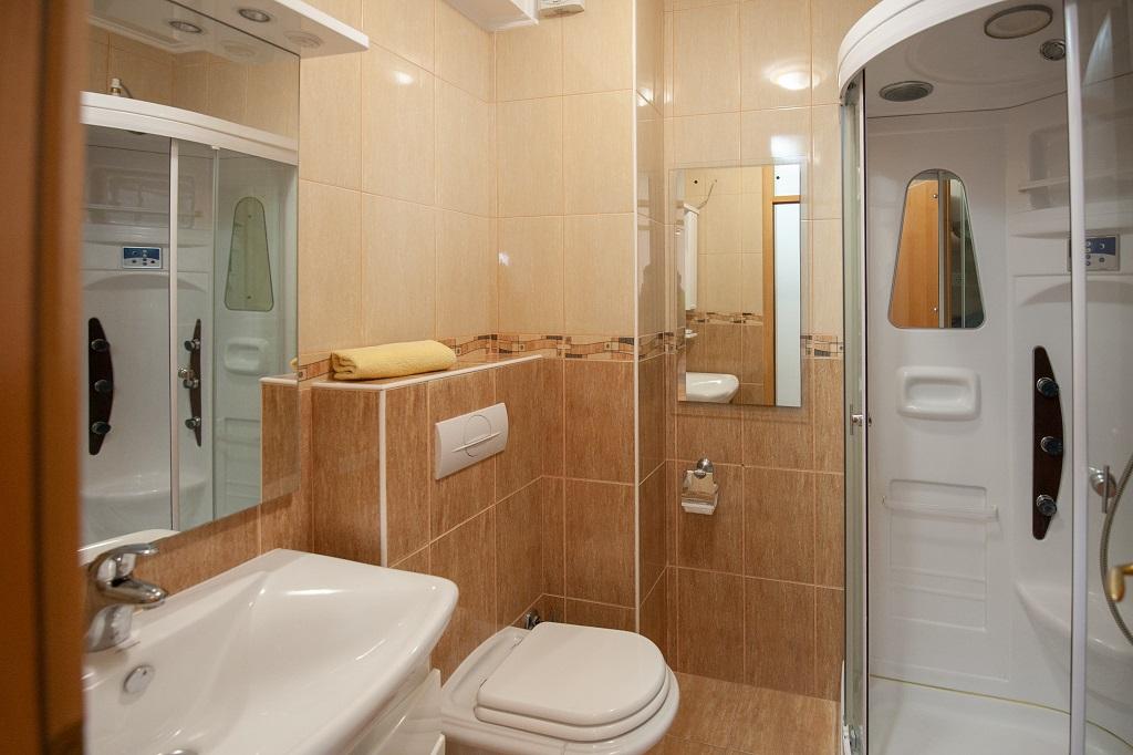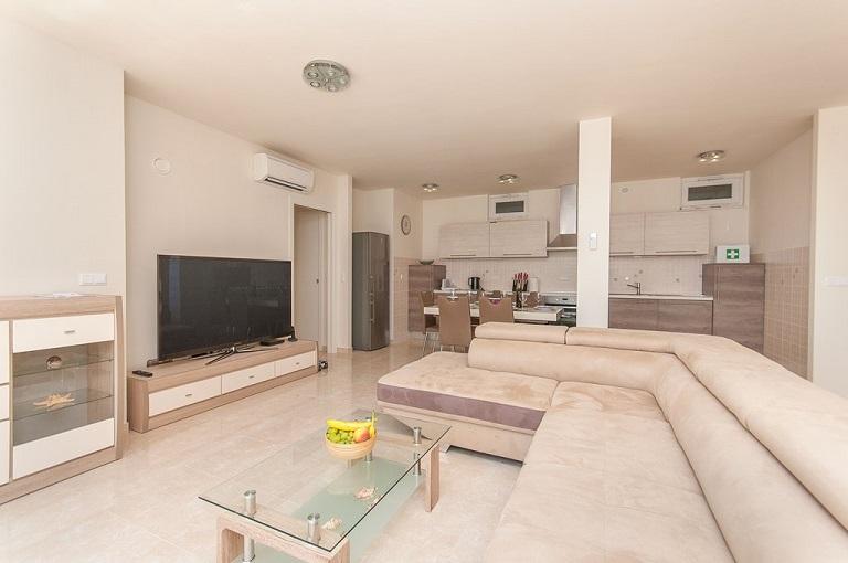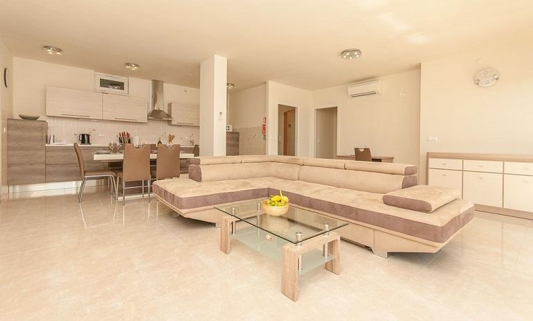 New, modern and spacious apartments in one of the most luxurious buildings in Omis, near the river Cetina and the Adriatic Sea. AP 6 + 2 Apartment with 3 bedrooms, living room, dining room with kitchen, 2 bathrooms, balcony. AP 4 + 2 Apartment with 2 bedrooms, living room, dining room with kitchen, 2 bathrooms, balcony.