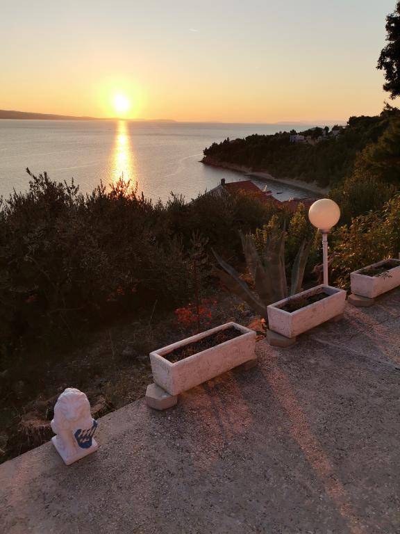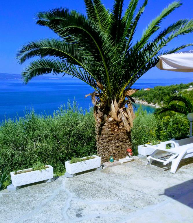 The apartment is on a hill, a few minutes from the beach. In the evening you can sit on the terrace and look at a magnificent view of the sea. Great value for money. The owner is very kind and helpful. He goes to great lengths to make your stay as good as possible, with advice, directions and extras. The airco in the sleeping room is great, the extra bed in the kitchen has only a fan.
