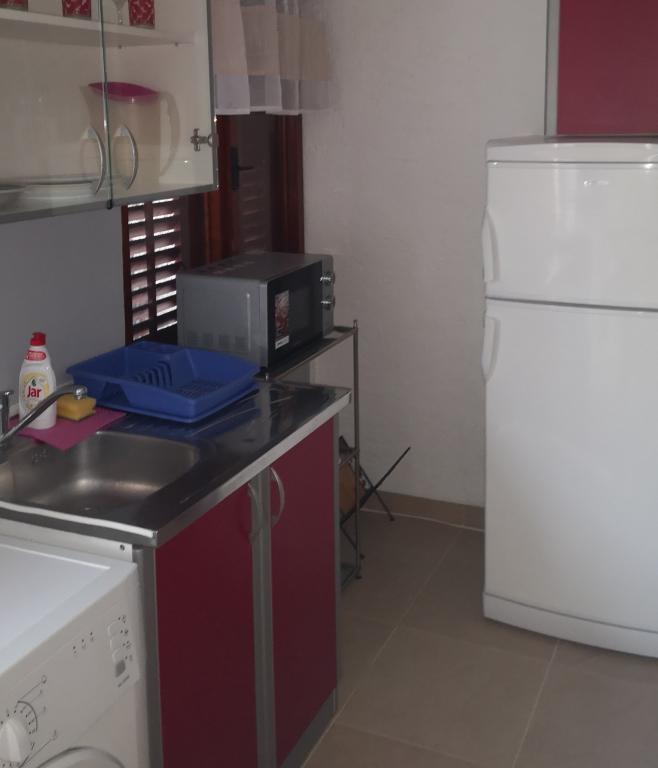 The apartment is located on a hill, a few minutes from the beach, which is accessed by quite steep stairs. The beach is quite wide, you can always find a shady place. In the evening you can sit on the terrace and admire the beautiful view of the sea. The proximity of traffic was not a problem. Great value for money. The apartments are clean, equipped with everything you need. The owner was very nice and helpful. He tries to make your stay as good as possible, giving advice. Air conditioning in two bedrooms, fan in the kitchen, washing machine in the bathroom - great. In the immediate vicinity there are 3 restaurants, 2 shops, 1 fruit and vegetable stand. All restaurants are worth recommending, but the best pizza is at Alfa. Bar and restaurant on the beach.