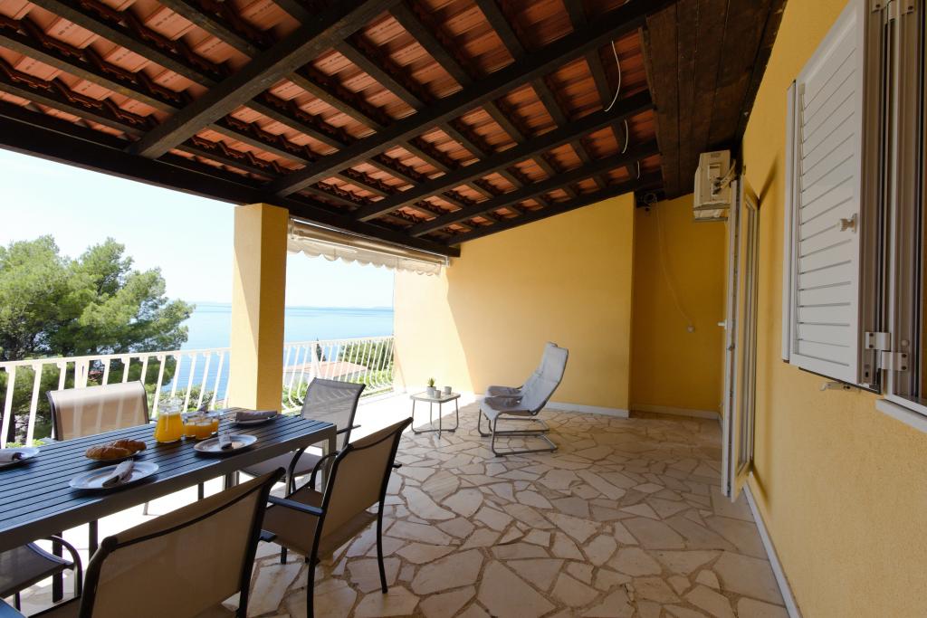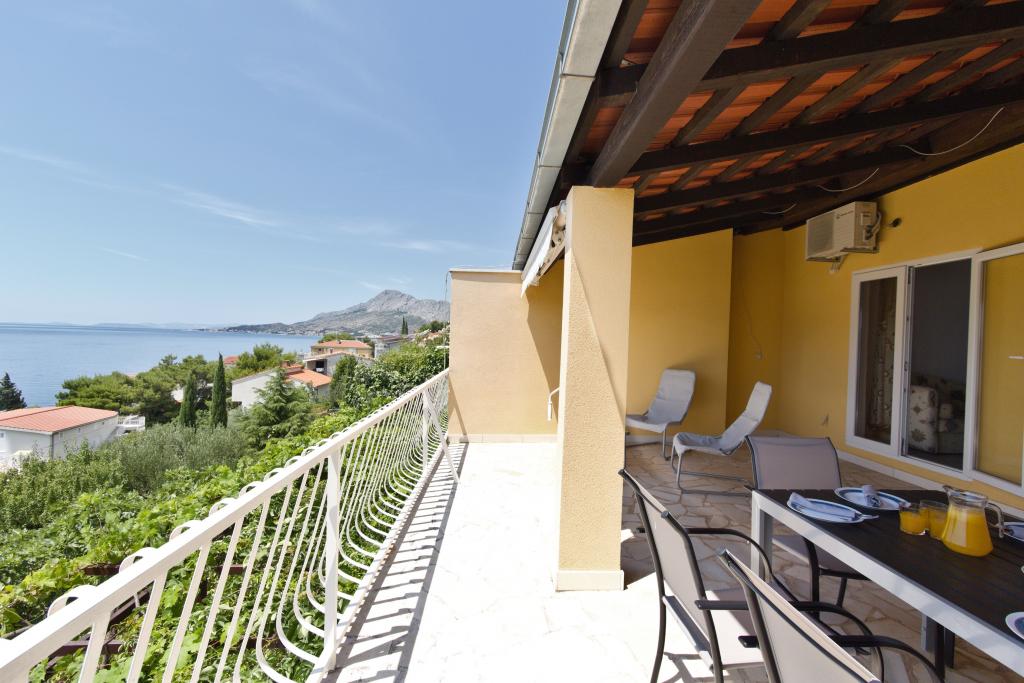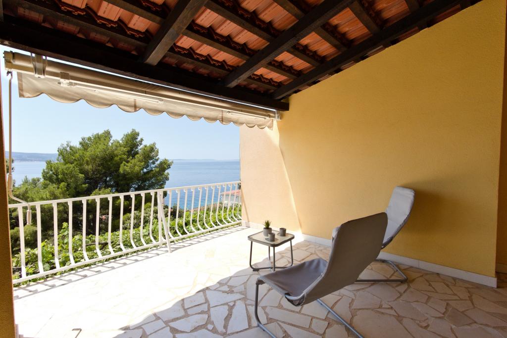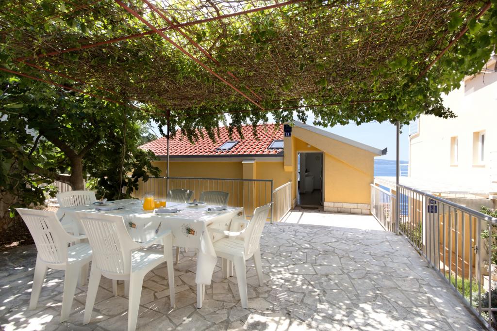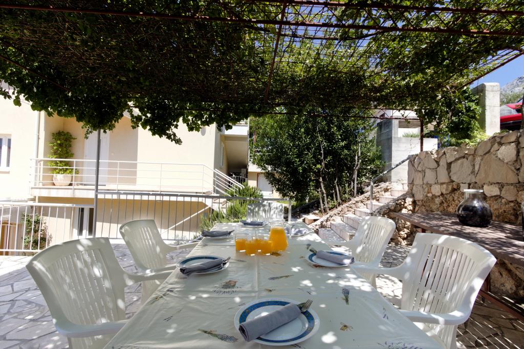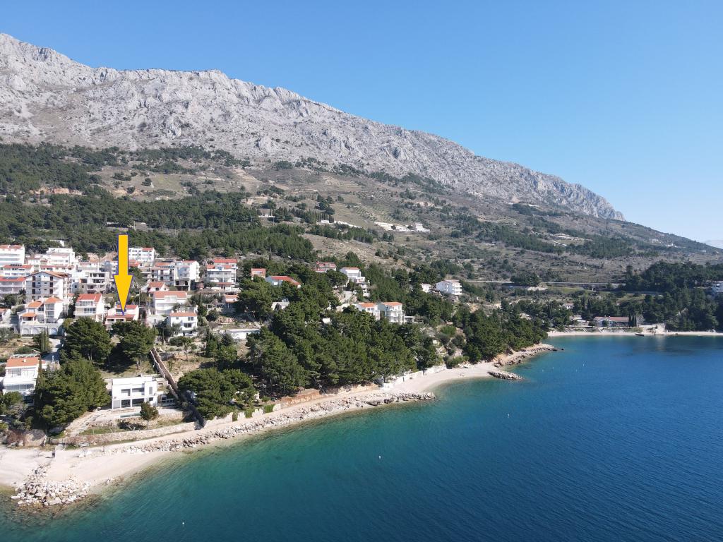 The house with three apartments is located in Nemira, 2km from the city Omis. There are steps that lead directly to the beach, only a minute walk from the apartments. All of the apartments have access to the barbecue area, and all three have spacious terrace/balcony overlooking the sea. In front of the house is a parking space for the apartments. Coffee bar, restaurant, market and a bakery are just 5min walk from the house. The first apartment can accommodate 5 +1, the second one 4+ 1 and the third apartment 2 +1.