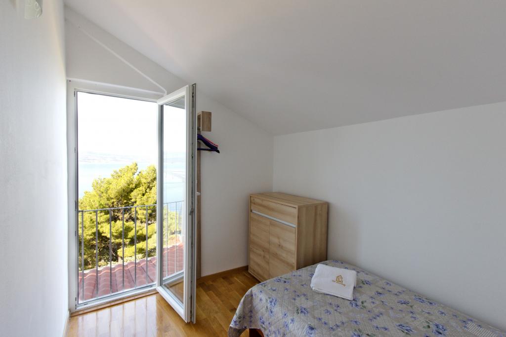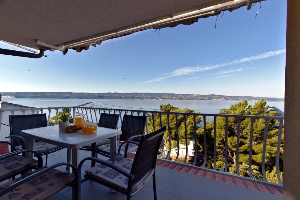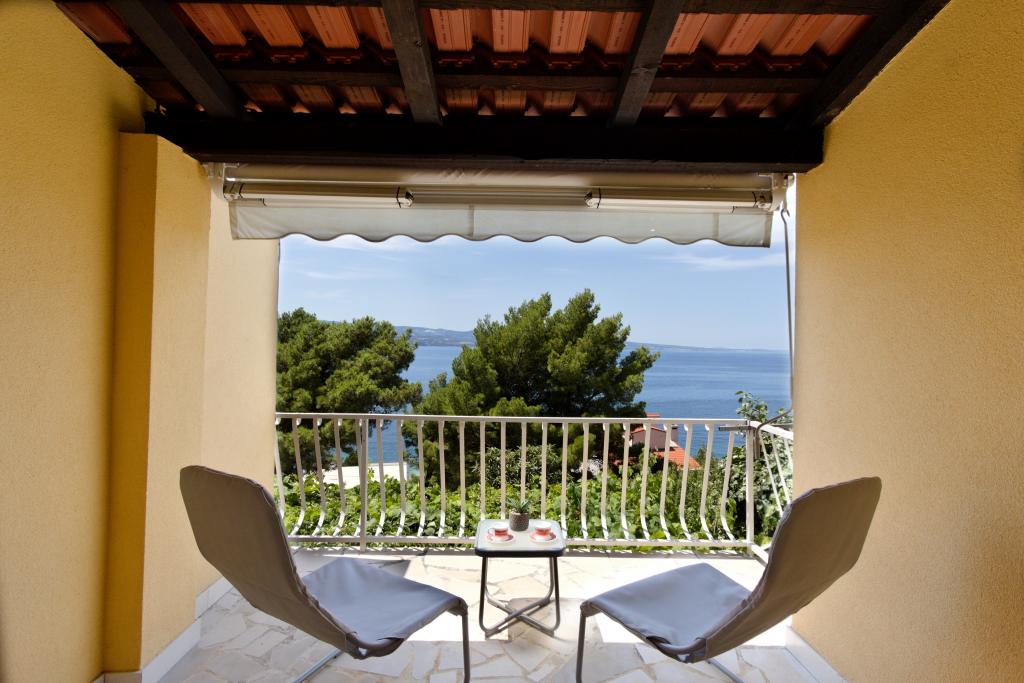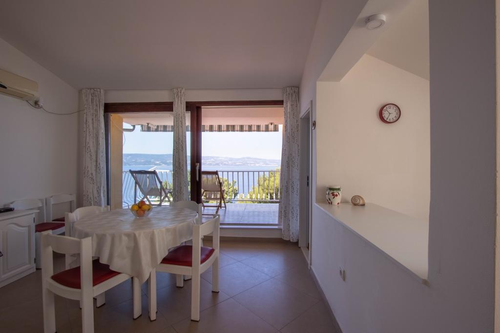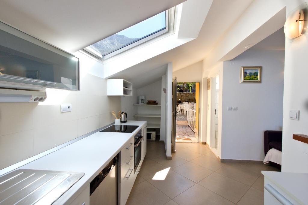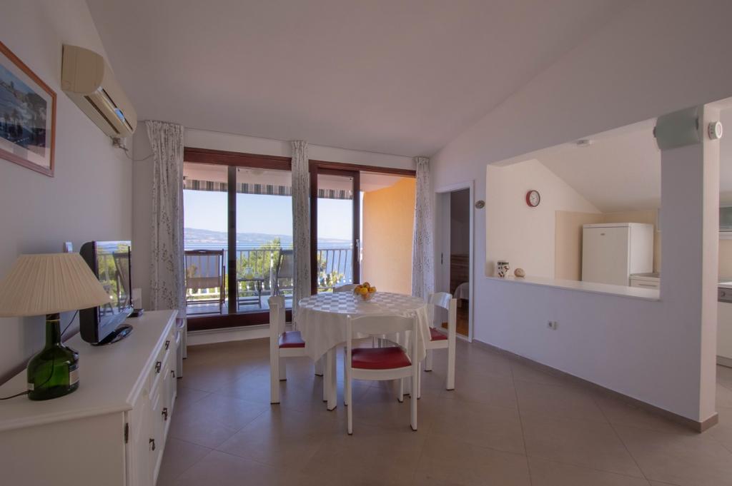 The house with three apartments is located in Nemira, 2km from the city Omis. There are steps that lead directly to the beach, only a minute walk from the apartments. All of the apartments have access to the barbecue area, and all three have spacious terrace/balcony overlooking the sea. In front of the house is a parking space for the apartments. Coffee bar, restaurant, market and a bakery are just 5min walk from the house. The first apartment can accommodate 5 +1, the second one 4+ 1 and the third apartment 2 +1.