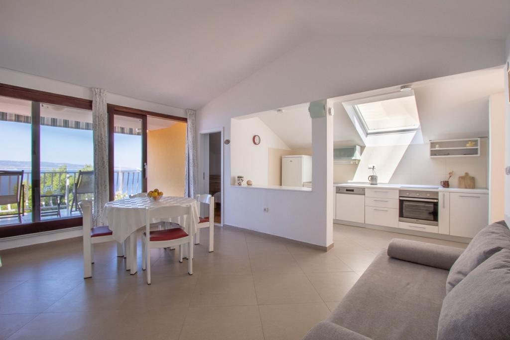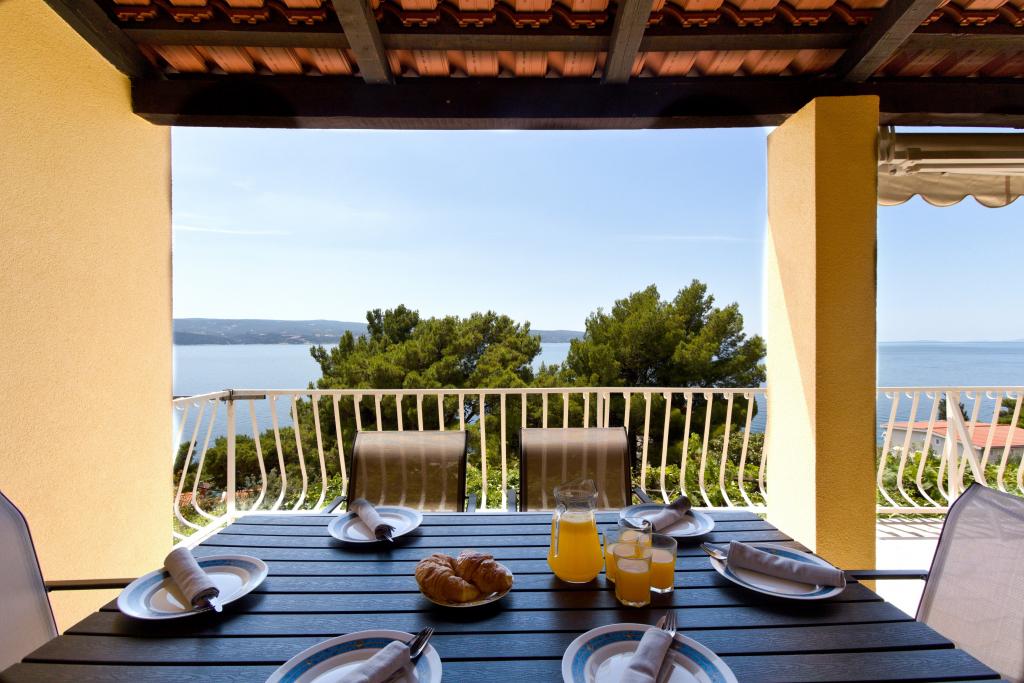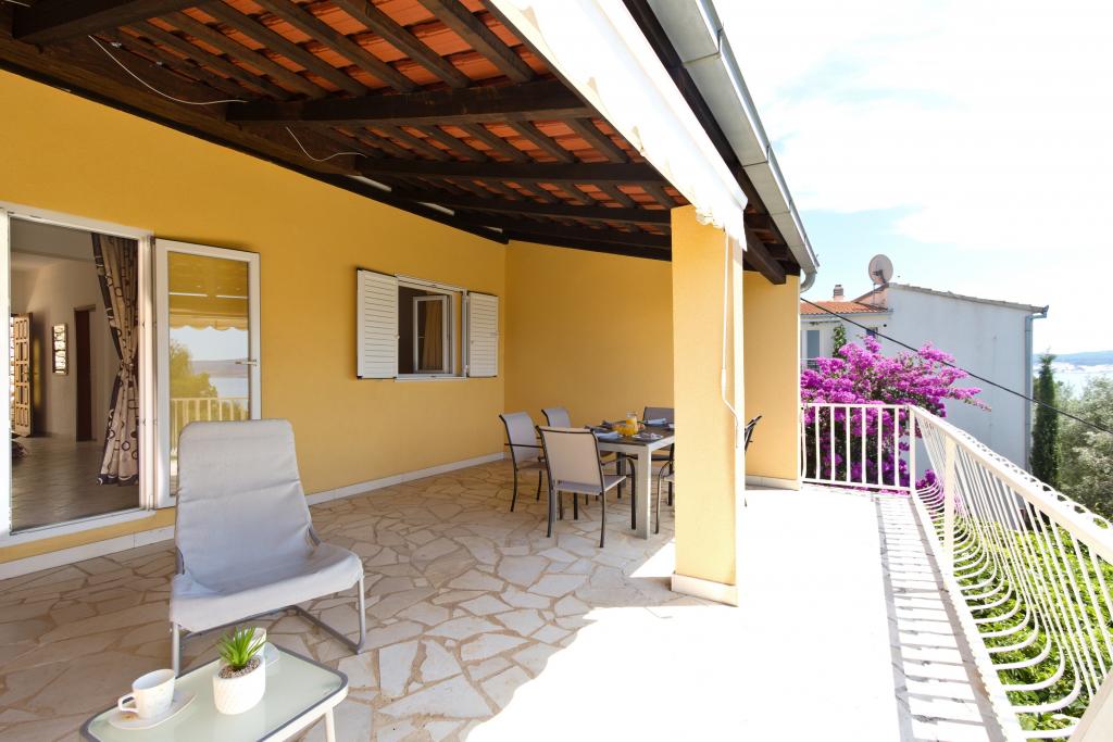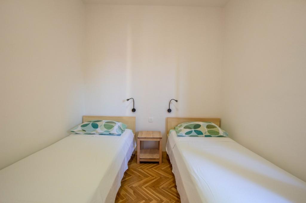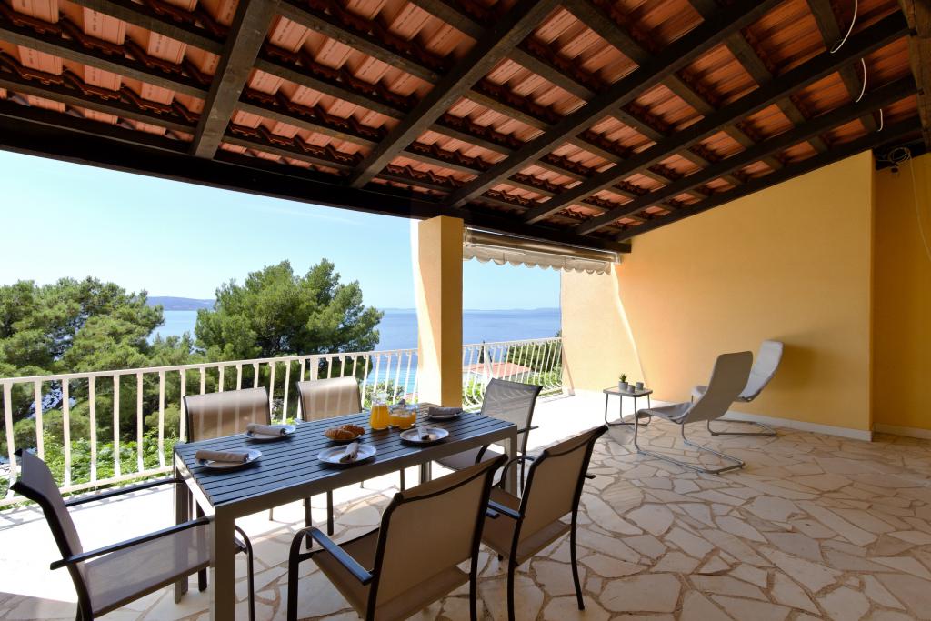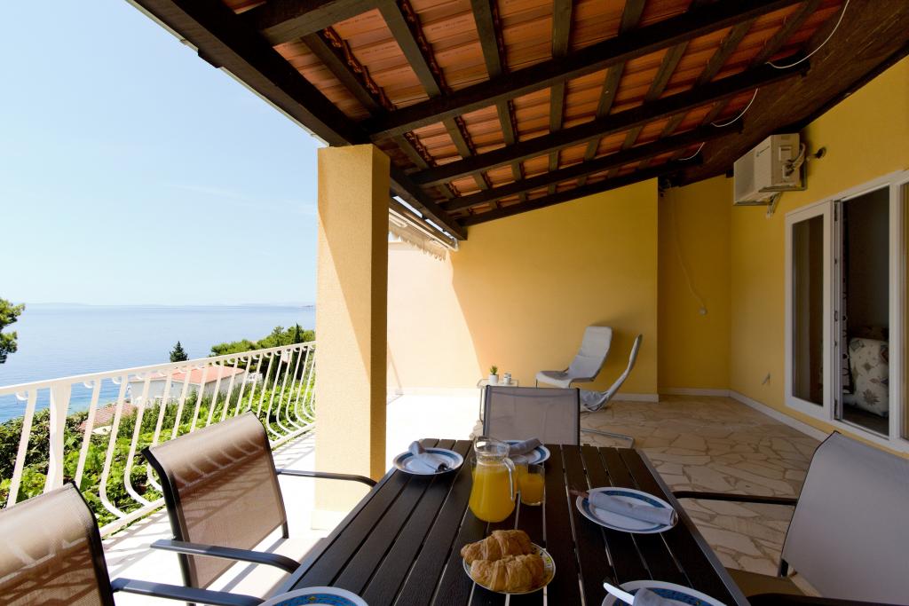 The house with three apartments is located in Nemira, 2km from the city Omis. There are steps that lead directly to the beach, only a minute walk from the apartments. All of the apartments have access to the barbecue area, and all three have spacious terrace/balcony overlooking the sea. In front of the house is a parking space for the apartments. Coffee bar, restaurant, market and a bakery are just 5min walk from the house. The first apartment can accommodate 5 +1, the second one 4+ 1 and the third apartment 2 +1.