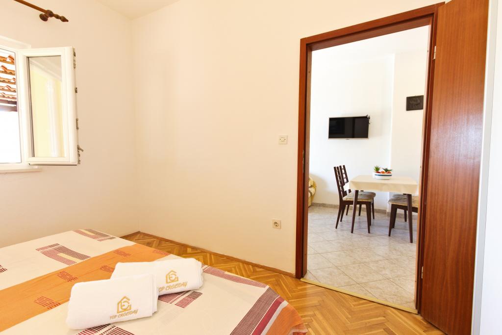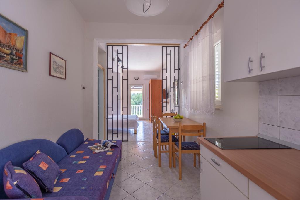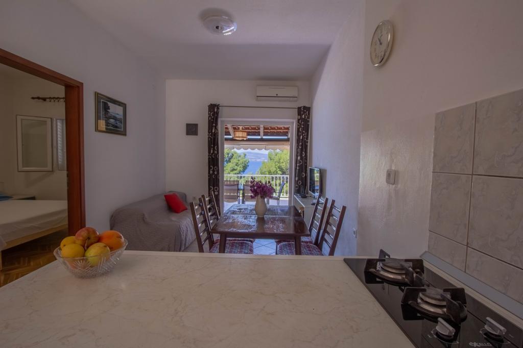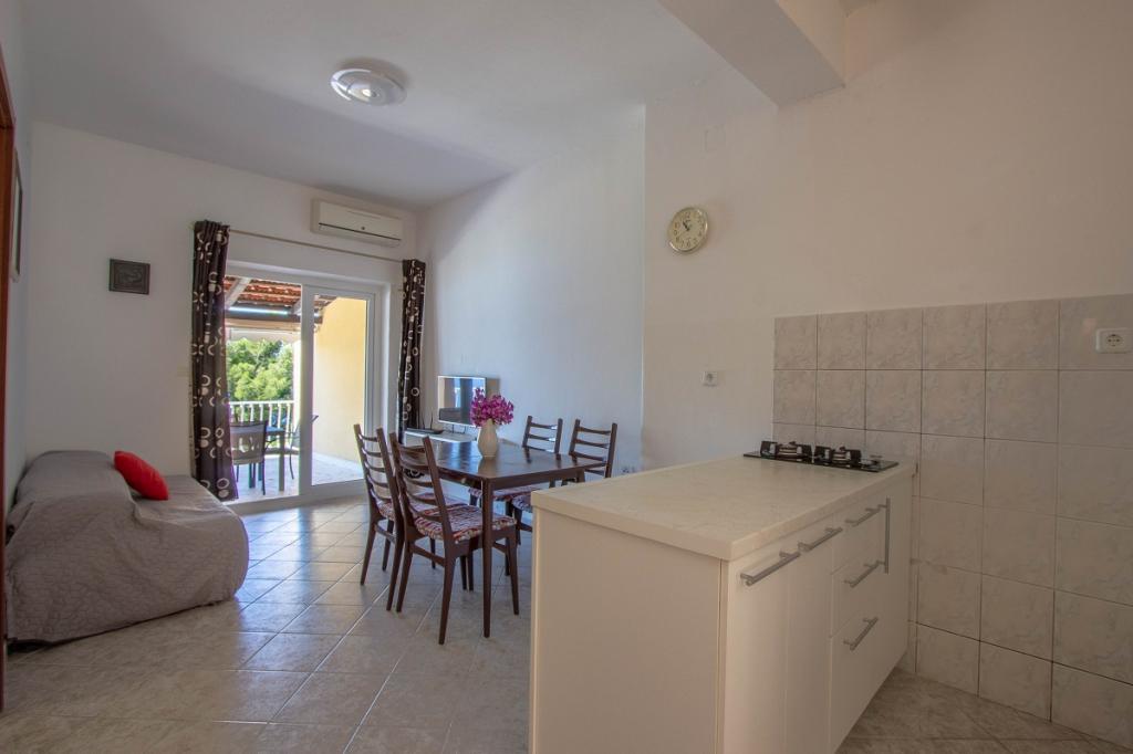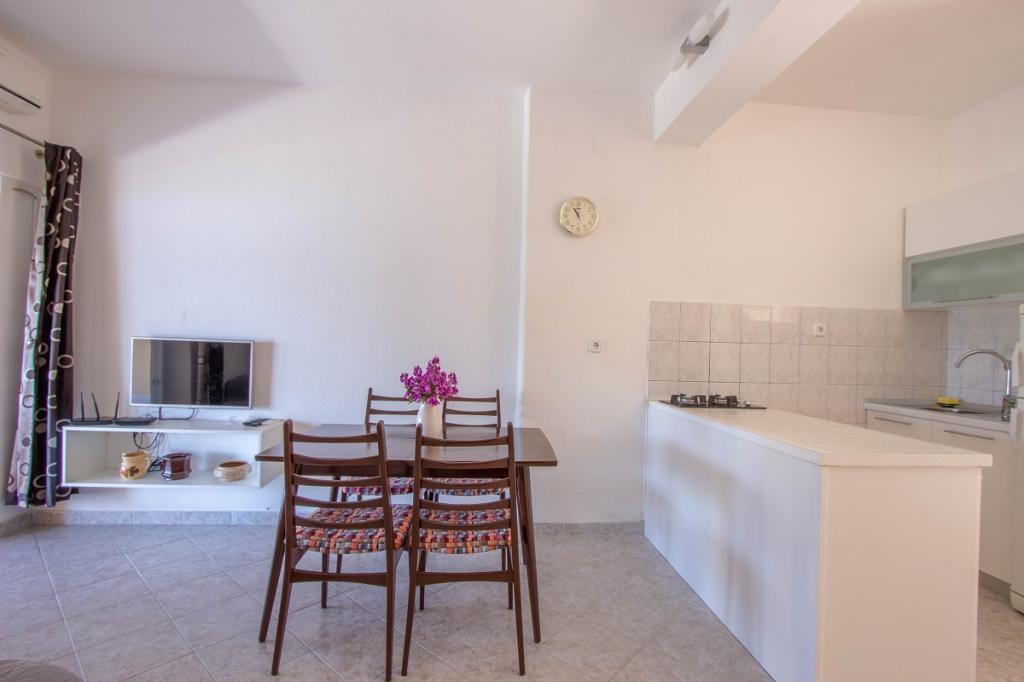 A place that surprised us so much with the beauty of the beaches, the friendliness of the people, the purity of the crystal blue sea... The apartment we stayed in is really great, with a spacious terrace from which you have a wonderful view of the sea, it has everything you need, even a machine for dishes and laundry, which was a big plus for us. The owners of the facility are very nice and cultured people, which made us think about coming back here next year and staying for a longer vacation. You don't need a vehicle at all, because everything you need is nearby. Our only, but small, complaint is that there were no towels in the apartment (which was not the case in the previous apartments we stayed in). those who love peace should come, because they will not repent.