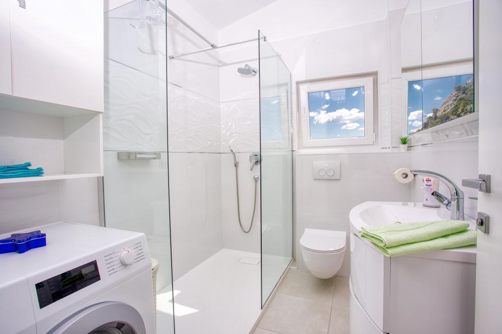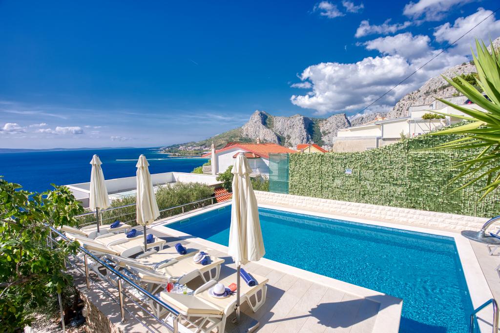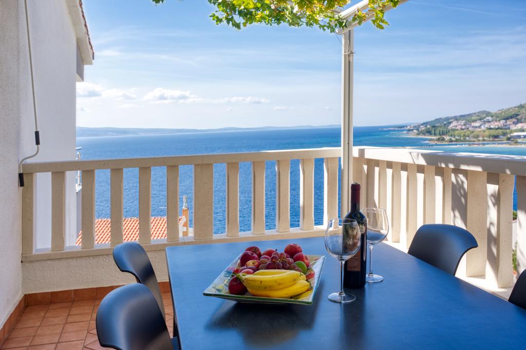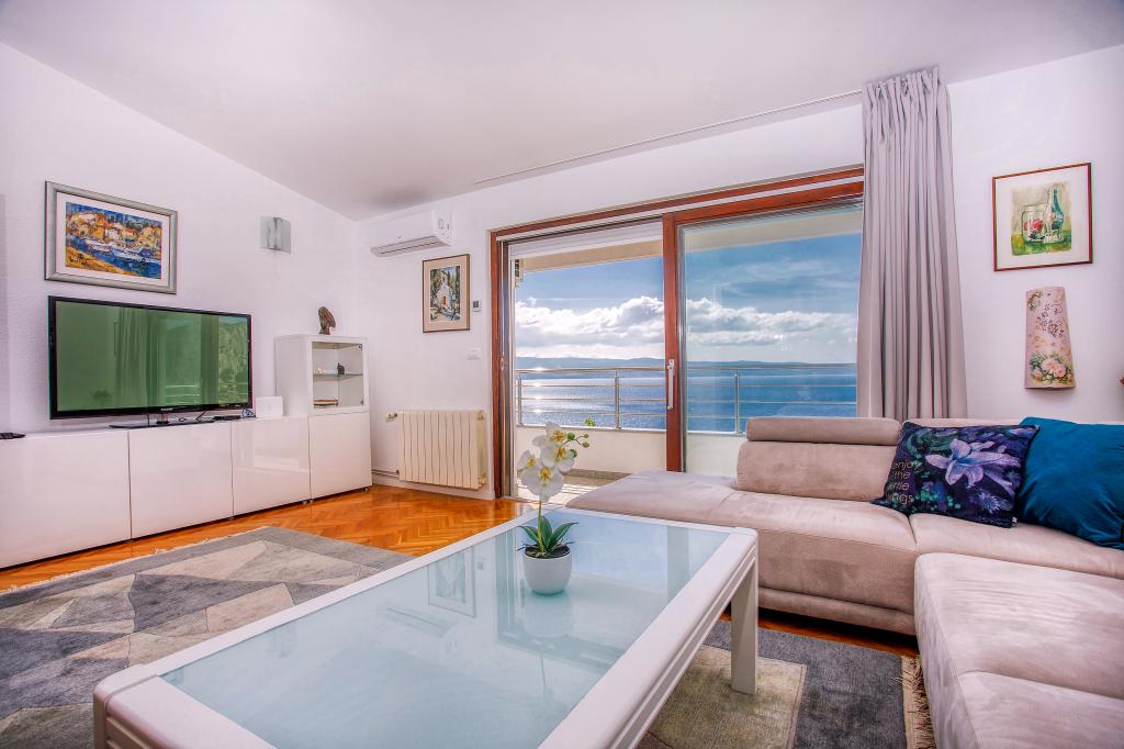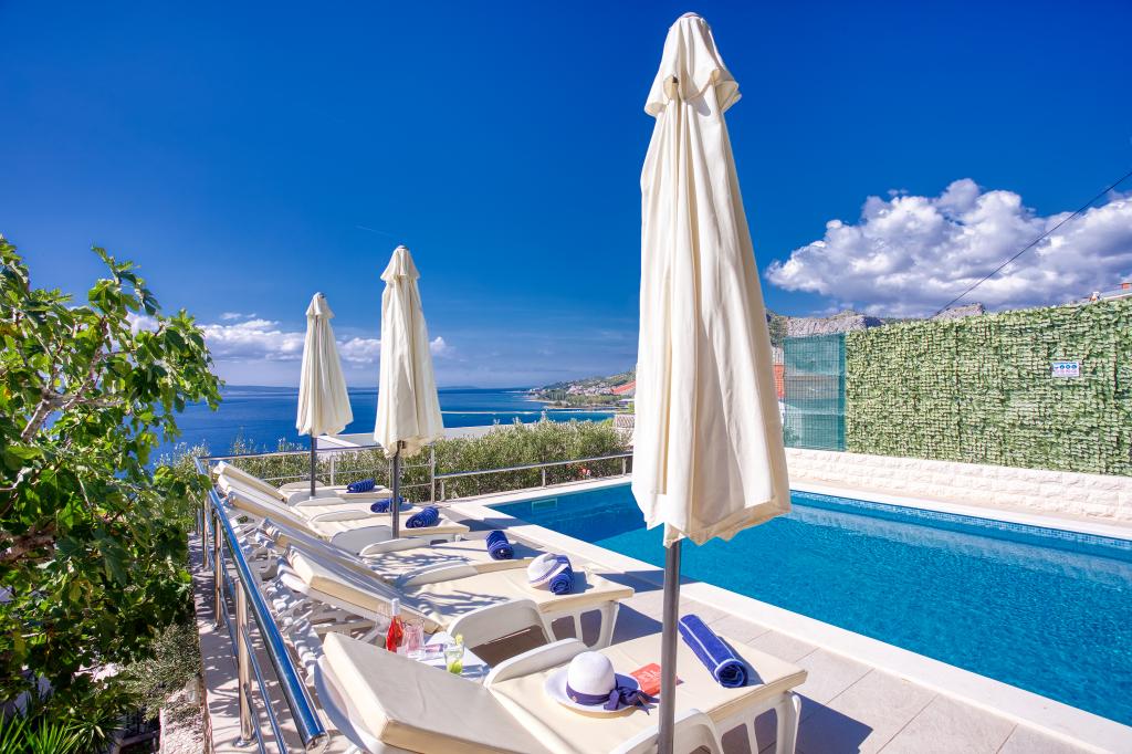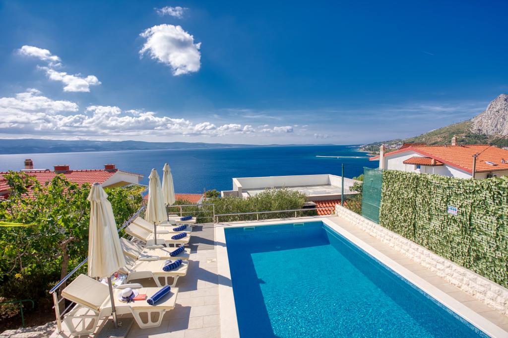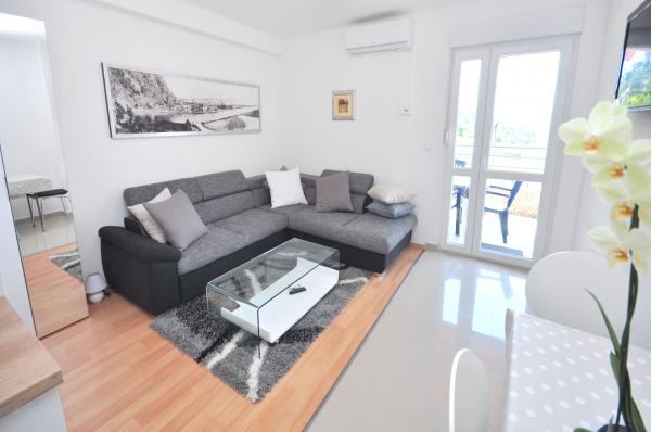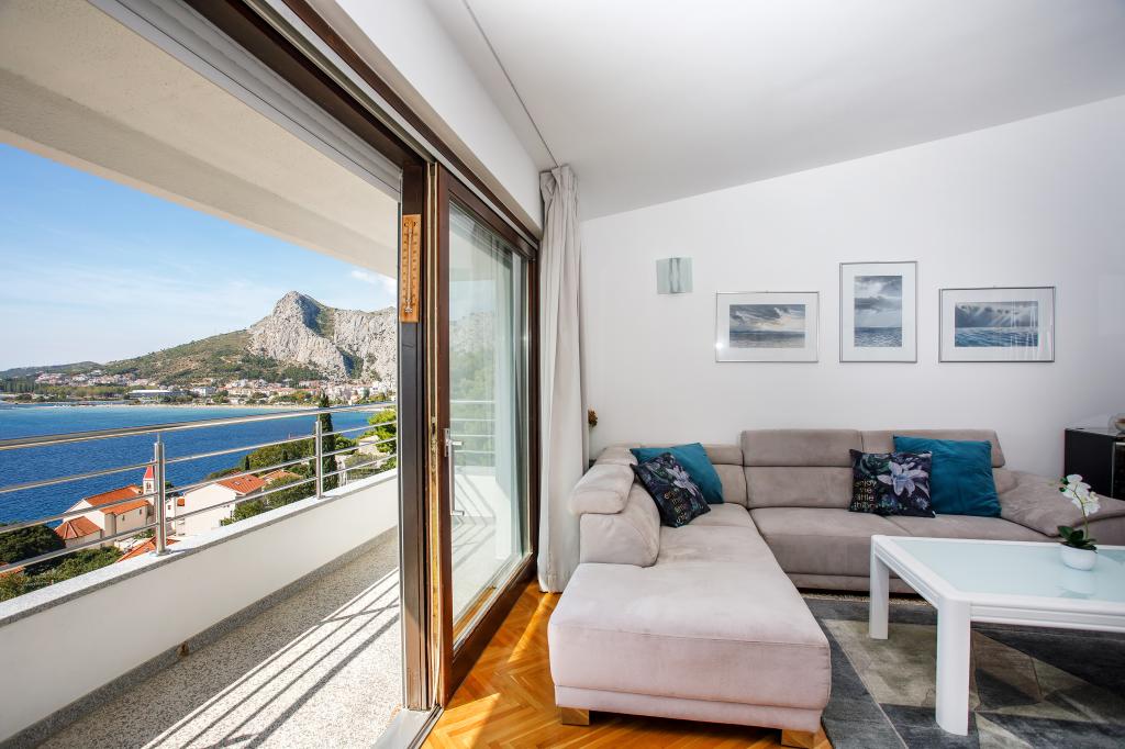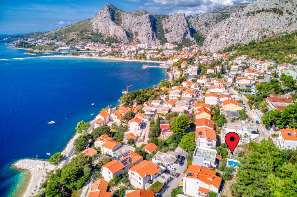 modern apartments in a quiet area of Omis surrounded by Mediterranean vegetation overlooking the sea.