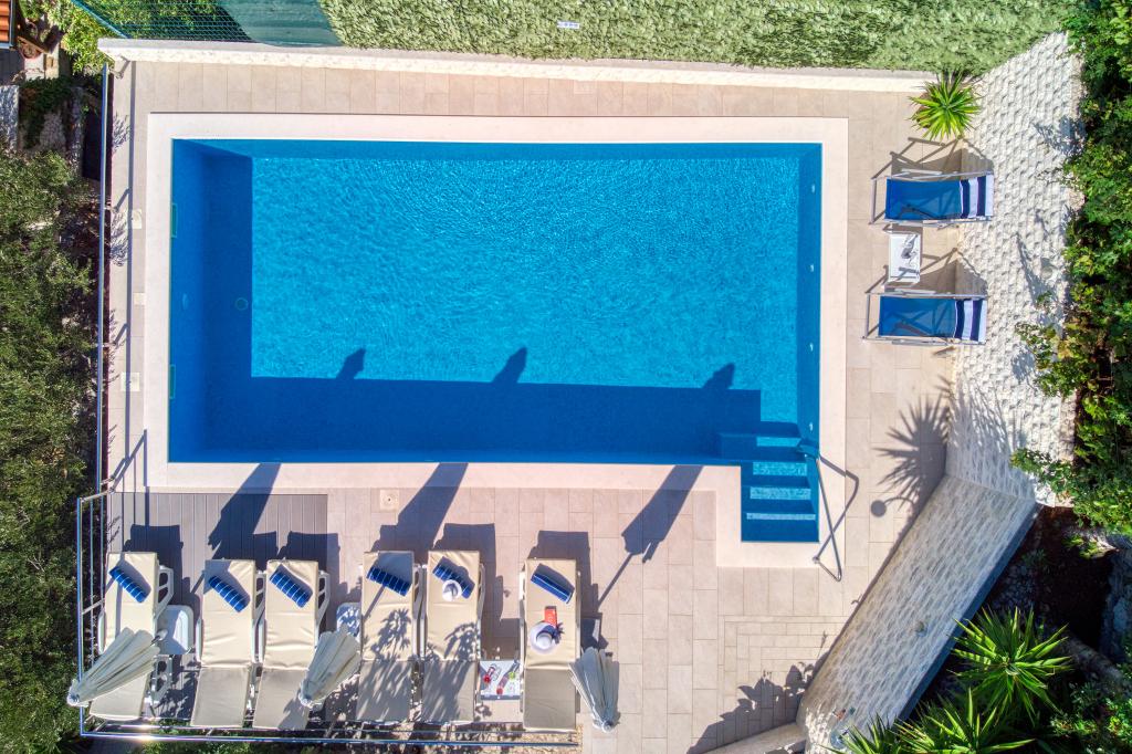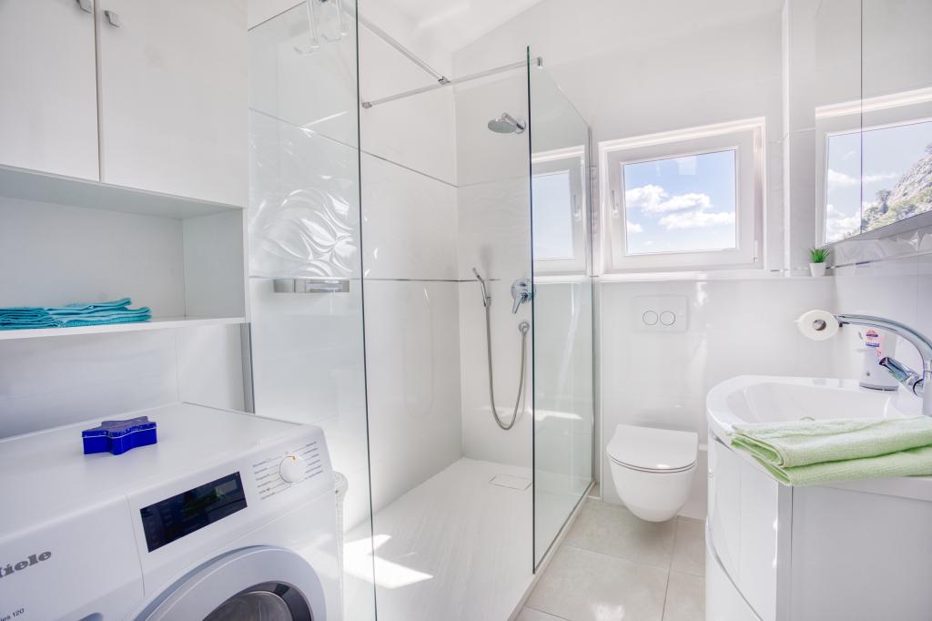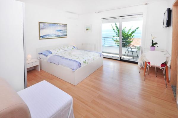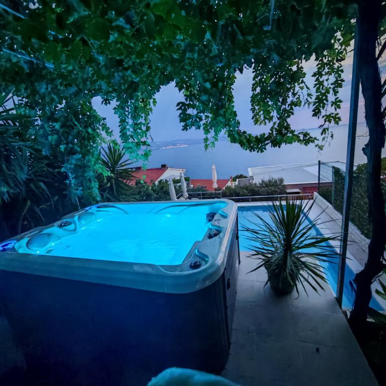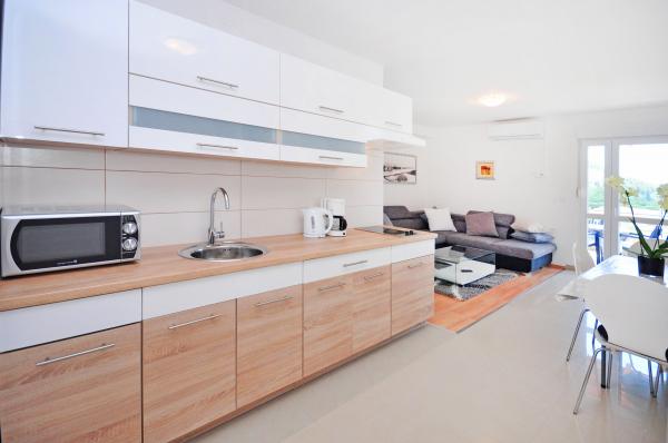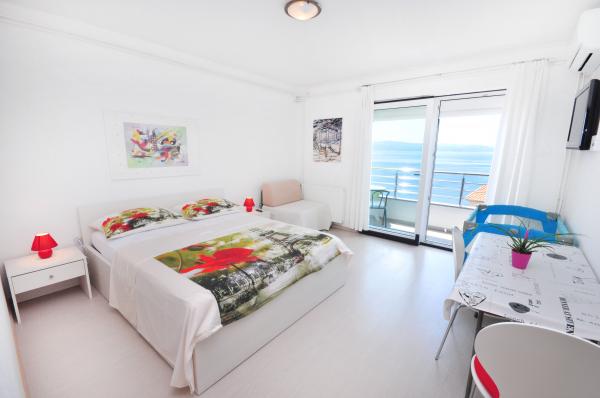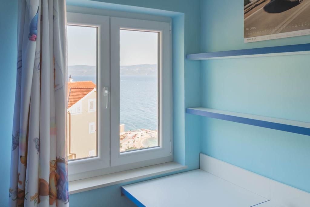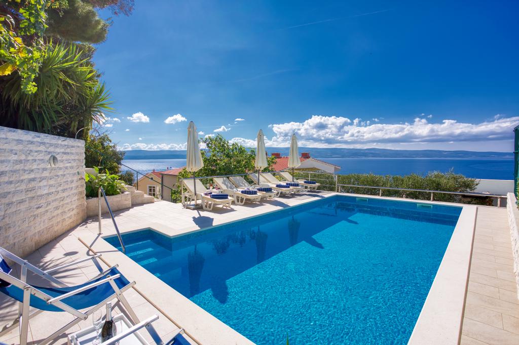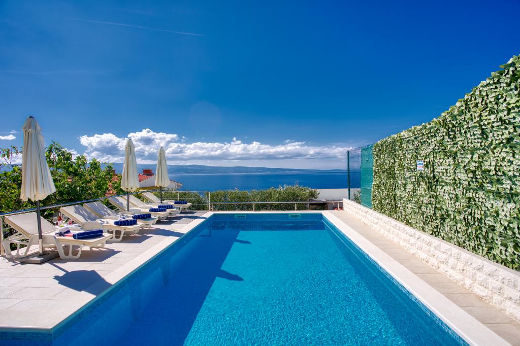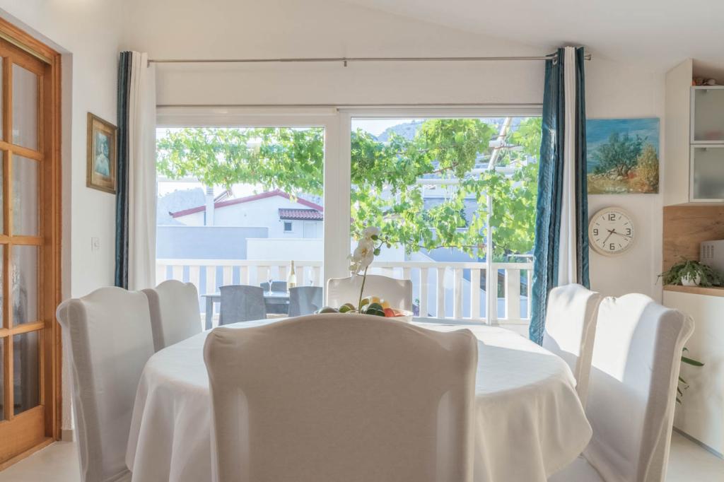 modern apartments in a quiet area of Omis surrounded by Mediterranean vegetation overlooking the sea.