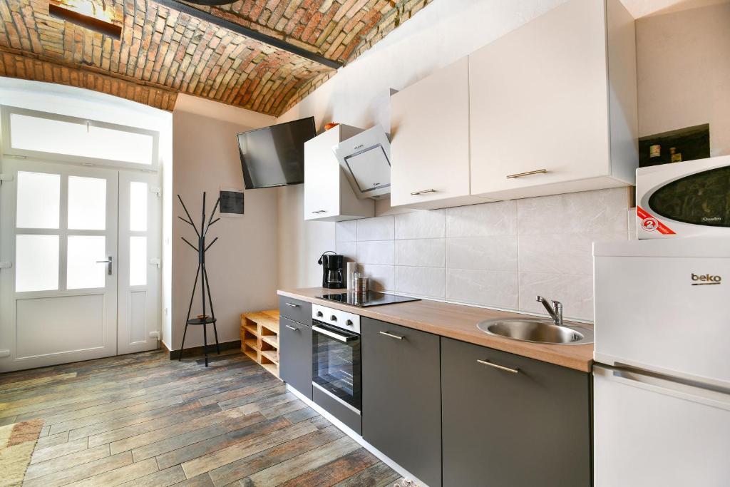 Modern apartment in a combination of brick and stone, in the center of Opatija, only 20 m away from shops, market, bank. All essential amenities are within a 5-minute walk from the accommodation. The apartment is located in a quiet side street right next to the main street of Opatija. The beach is a 5-minute walk away. As part of the old building Villa Rosenberger, it has its own entrance. It consists of a partially separate bedroom, living room, kitchen and bathroom, terrace/parking.