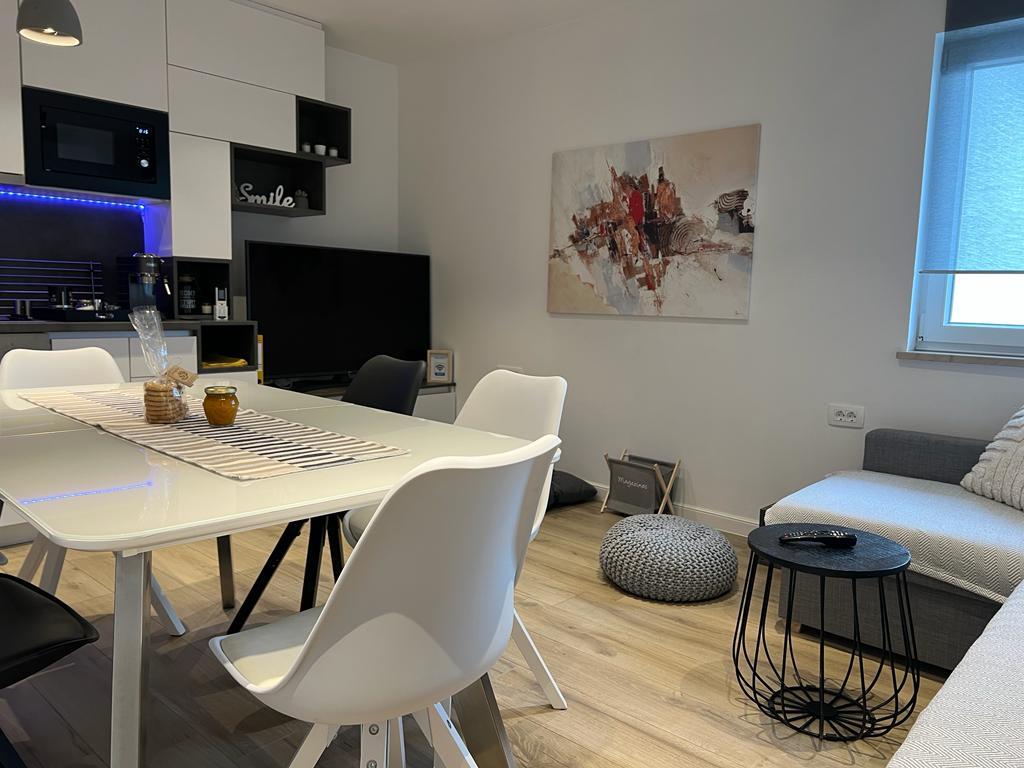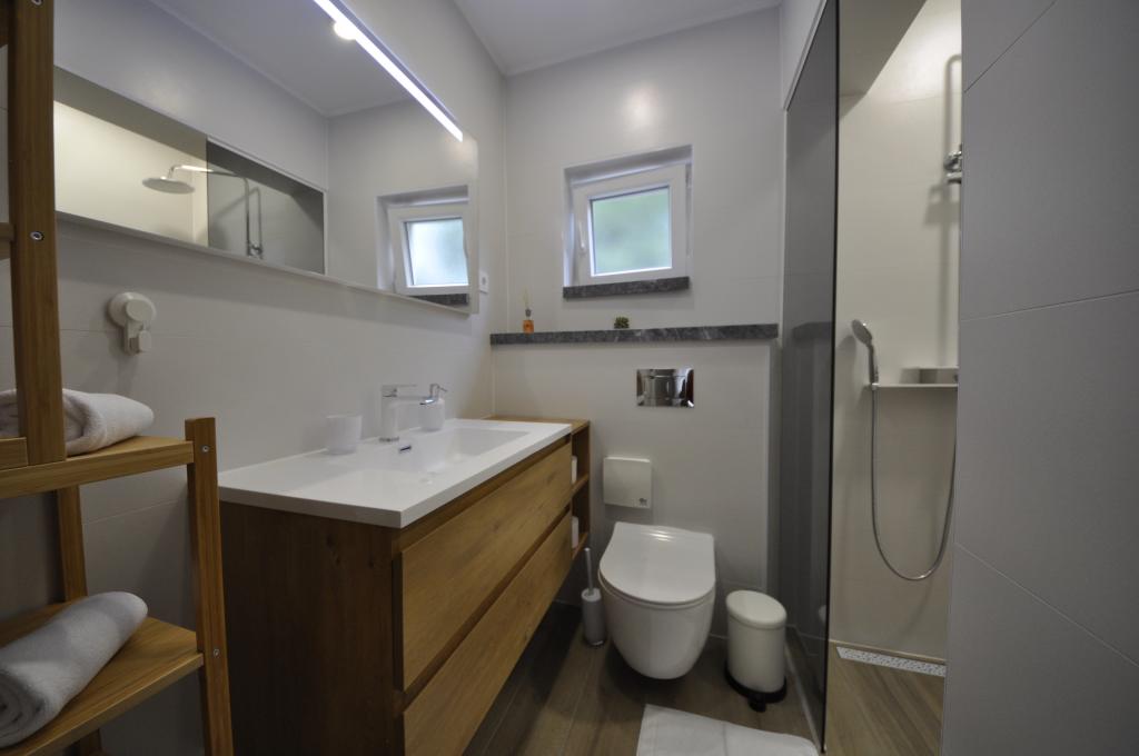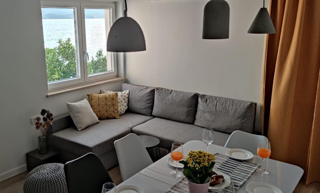 Newly renovated apartment in a quiet area, Perna, near Orebic. The apartment is located first row to the sea, pebble beach. According to the stunning part, there is Viganj, a favorite vacation spot for many surfers and lovers of sea sports. The terrace offers a beautiful view of the city and the island of Korcula. The apartment consists of two double bedrooms, small toilet, bathroom, kitchen and dining room. The terrace is 25m.