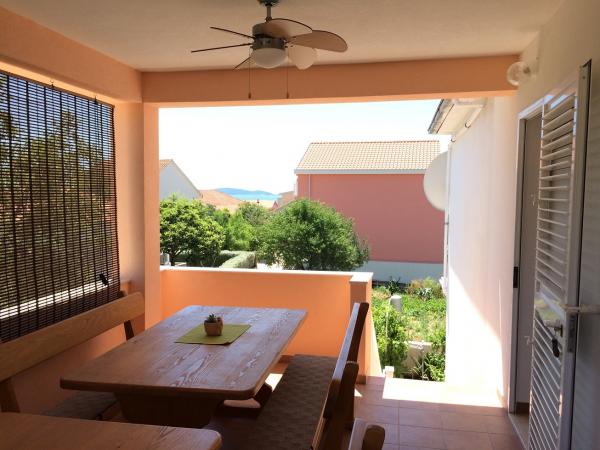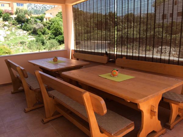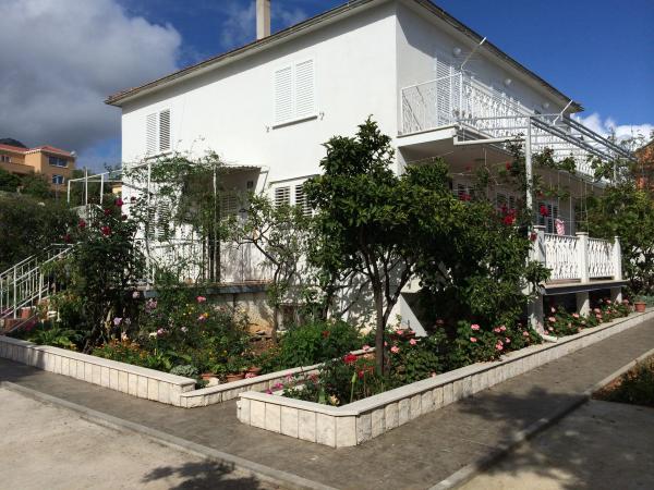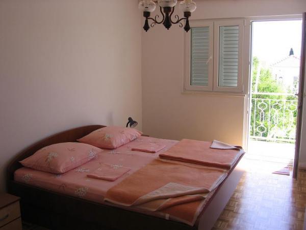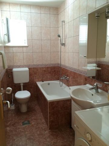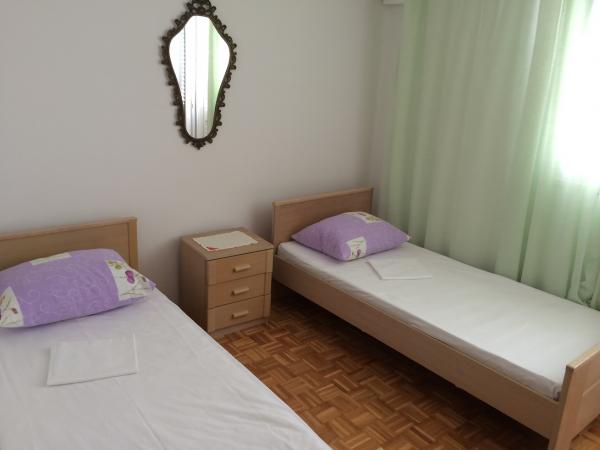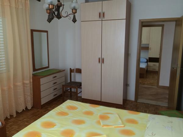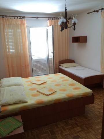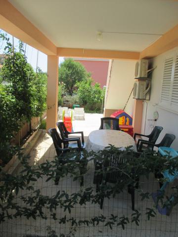 There is a large apartment in the family house. It is fully equipped. It has a separate entrance and parking. The house is located two minutes' walk from the beach, sea, shop and bank. The apartment (8+2) is located on the first floor and consists of four bedrooms (two triples and two doubles), a large kitchen, two bathrooms with toilets (one has a washing machine), a large balcony and a large terrace. The apartment is equipped with air conditioning (large air conditioner installed in the hallway), Wi-Fi internet, microwave, stove, oven, dishwasher, washing machine, large fridge, all necessary dishes and bed linen. Bed linen is changed once a week. Tax, Wi-Fi, parking and use of air conditioning are included in the rental price.
