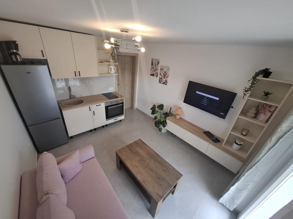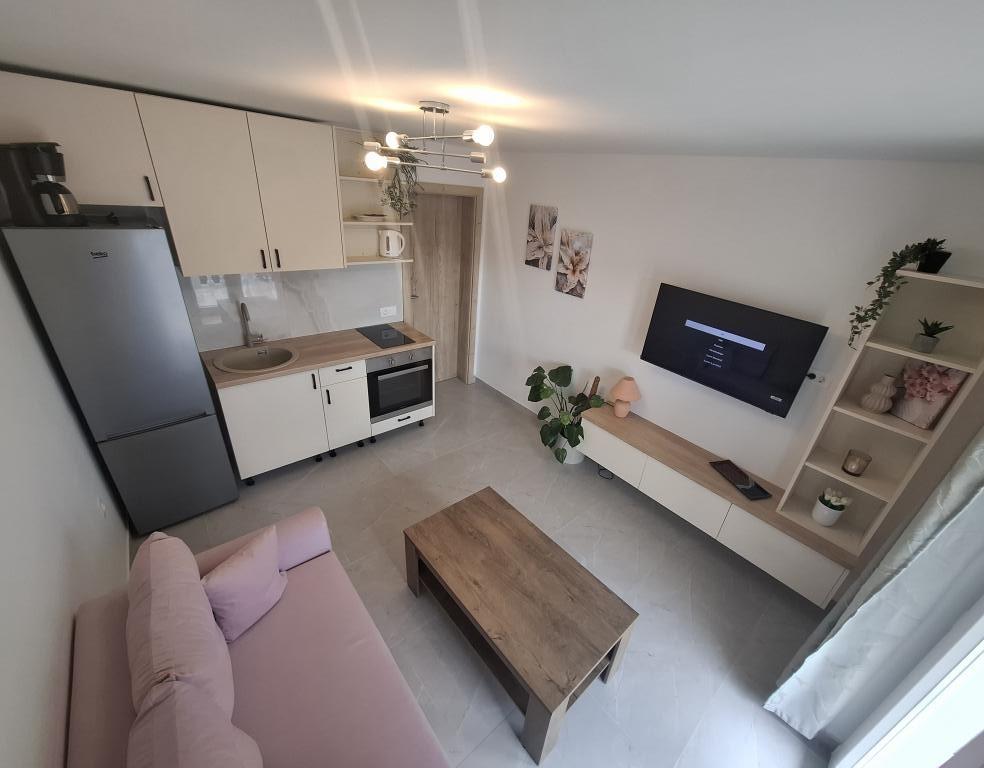 My husband and I spent a wonderful holiday in a very nice, new apartment with a great host Sandra. Parking in the garage, entrance with a large terrace and seating, quiet and functional air conditioning, close - walking distance to the Plodine hypermarket, privacy and complete peace at night for a peaceful sleep. Fully functional kitchenette for everyday cooking, large fridge with freezer. We were very satisfied and had a great rest.