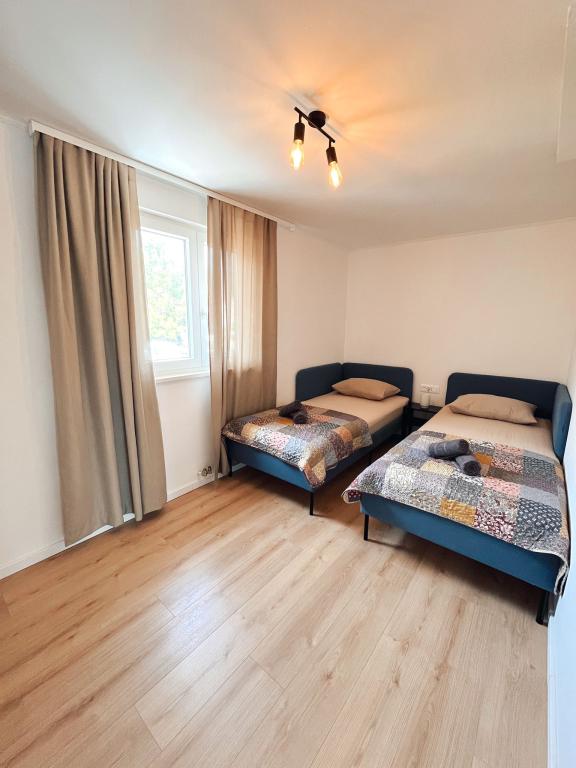 Enjoy with your family in this modern accommodation. The house is located in the immediate vicinity of the sports center, the main beach of Trstenica, bakeries, shops, coffee bars and is not located in a very quiet neighborhood. The guests can use the whole house, which is on two floors, on the ground floor there is a kitchen, a living room and a toilet, and on the first floor there are 3 rooms and a toilet.