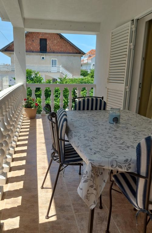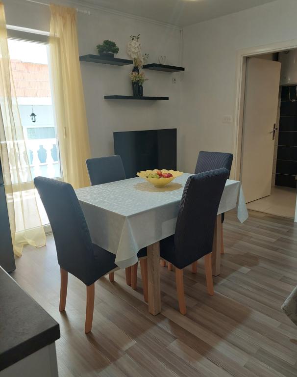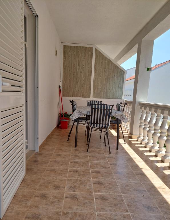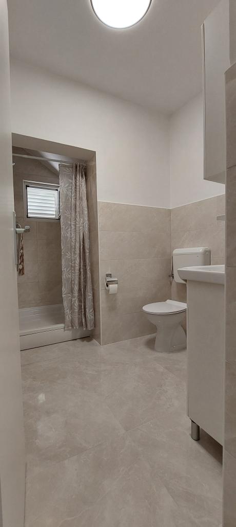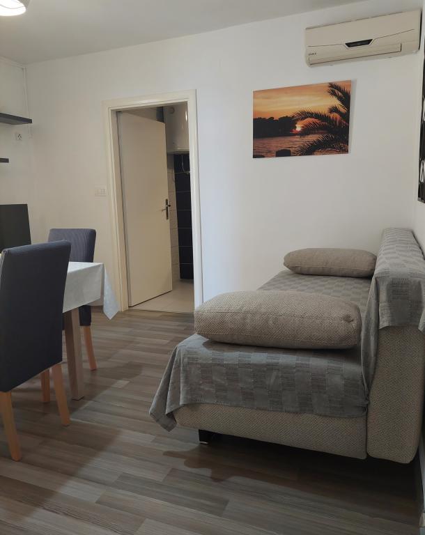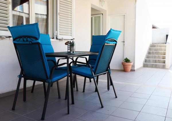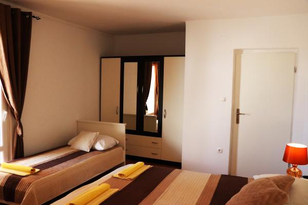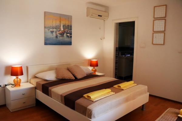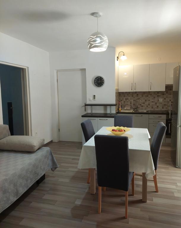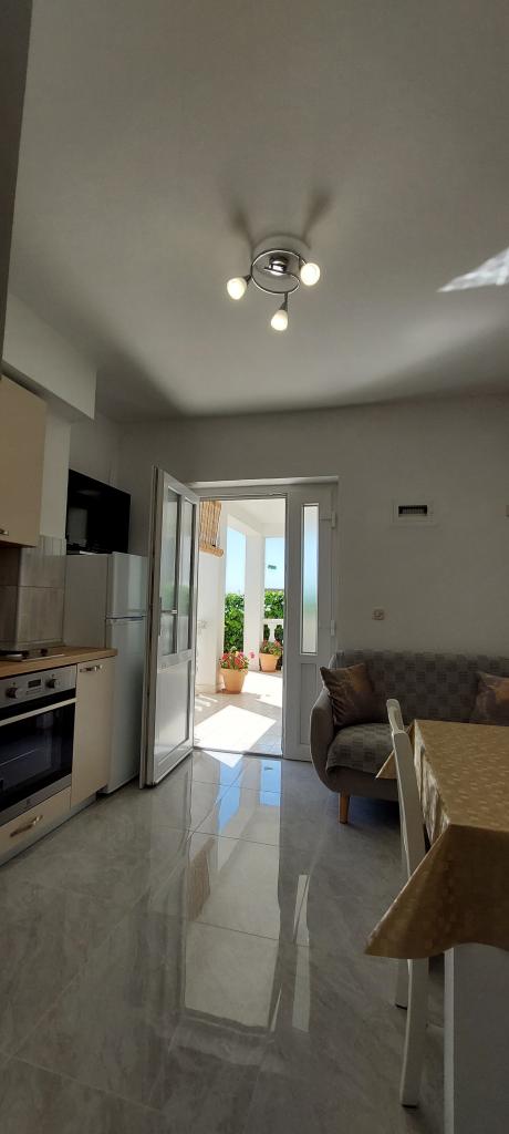 The accommodation is very good, everything is neat and clean. The apartment has everything you need for a stay. Friendly hosts. The apartment looks much better in person than in the pictures. In front of the apartment is a huge terrace suitable for smaller children but also for sitting since it is in the shade all day. I recommend it to families with small children, but also to everyone who wants to spend their vacation in excellent accommodation.