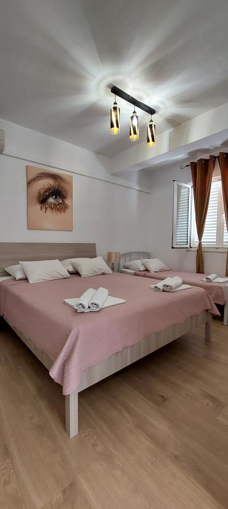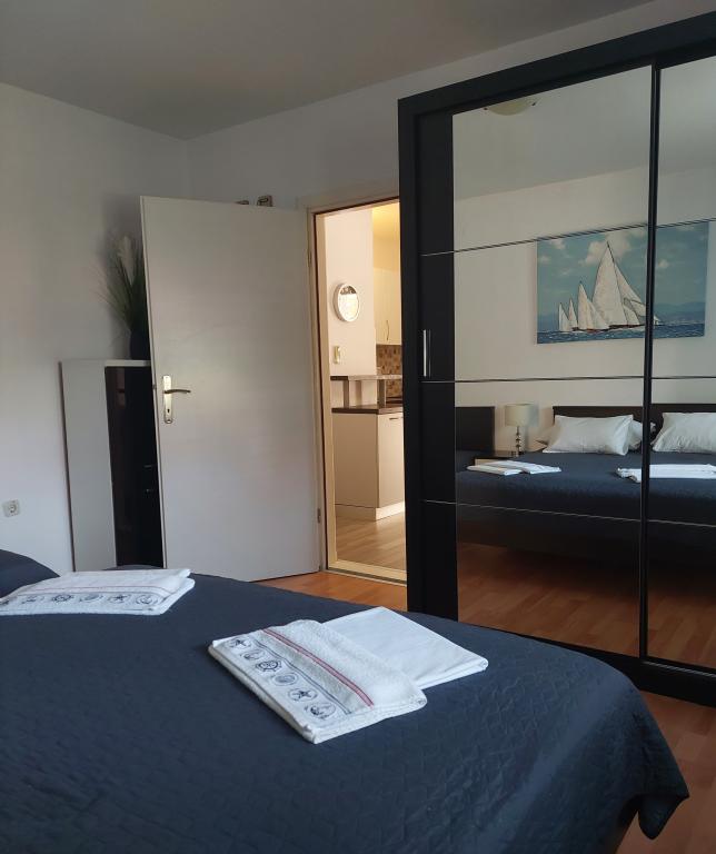 The apartment is clean, tidy, very nicely furnished. In a great location with extremely friendly hospitality. The beds are comfortable, the terrace is large, beautiful, much bigger than in the picture. So, cleanliness at its peak, everything corresponds to the photos, it is even better in reality. My recommendation 10/10