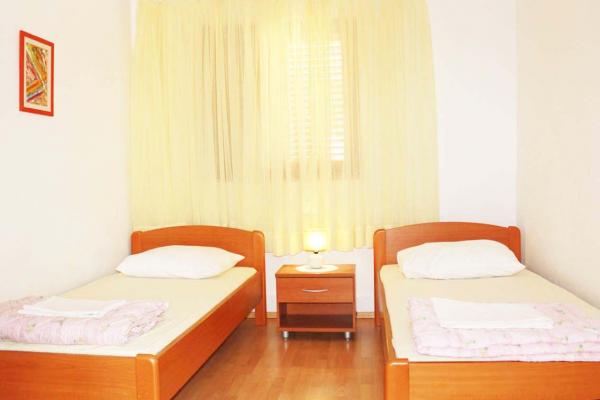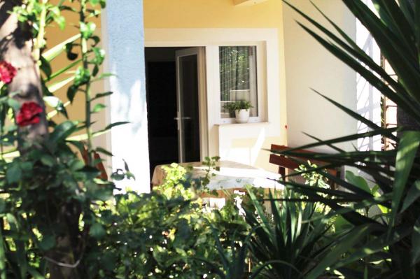 The house is situated in the open country as well as in a very quiet area and offers a marvellous ambience for individuals in need of a rest. The distance to a very beautiful beach which is ideal for children is 150 metres. The beach is very long and its very suitable to go for a walk. As a result the house can be rented all over the year. The house has 6 apartments. They dispose of a kitchen, a living room, separated bedrooms with folding beds, bathroom with shower, SAT-television and a balcony. The price for one apartment includes bed linen, a completely furnished kitchen with all necessary crockery and cutlery, the consumption of electricity and water as well as the final cleaning. A grill is also at your disposal. There is also a house-owned parking place in front of the house which disposes of parking spaces for cars. Next there is the possibility to use the washing machine.