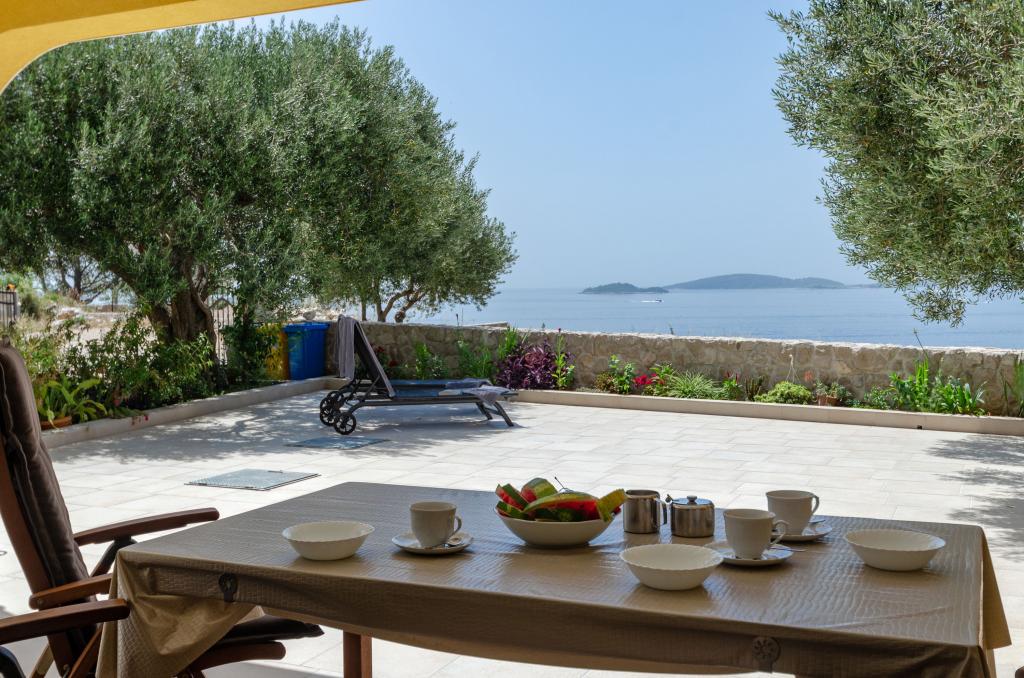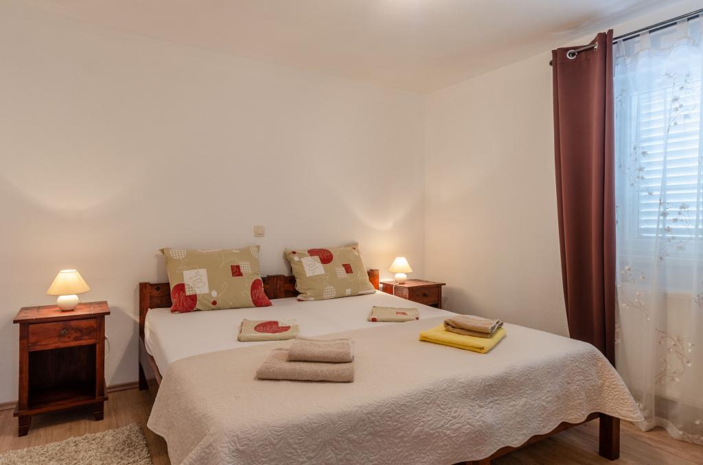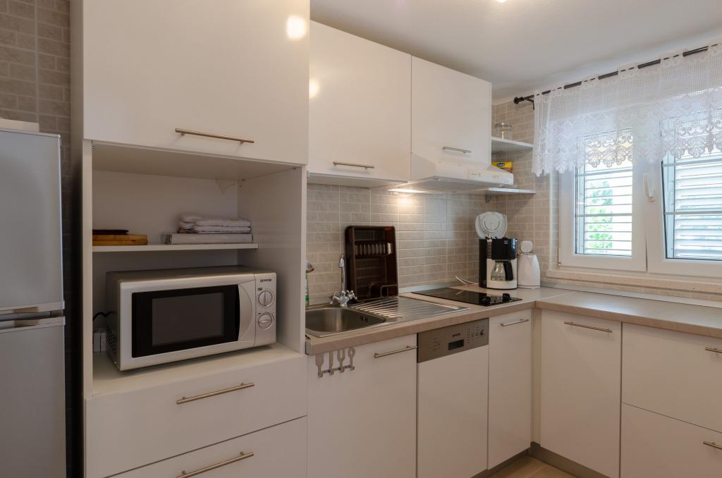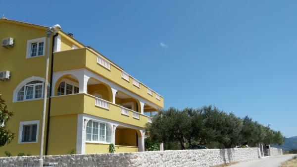 All-day accommodation. Family house-new building surrounded by greenery-olive grove and 3000m2 garden. Peace and wonderful sight relax. We are in the blind street at an optimal distance from all the amenities needed for a good stay. . A 10 minute walk will take you to the beach, the center, the shop, the restaurant, etc. Modernly equipped apartments include bed linen, toilet paper, liquid hand soap, towel racks and regular maintenance. Wi-fi and cable internet connection. A1 apartment with 3 separate bedrooms - each has its own shower / WC, living room, kitchen, dining room and gallery with 2-bed linen, 3klime. The apartment also has a large terrace with umbrellas and a seating set. Pusenje is allowed only on the terrace, otherwise the whole house is non-smoking. A1 is the entire second floor of a family home, has a separate entrance and overlooks the sea in the south. A2 and A3 are located on the ground floor overlooking the sea. The yard provides ample parking space for several cars and vans.