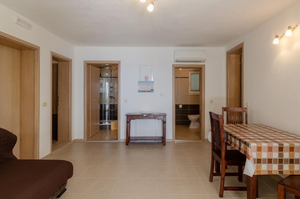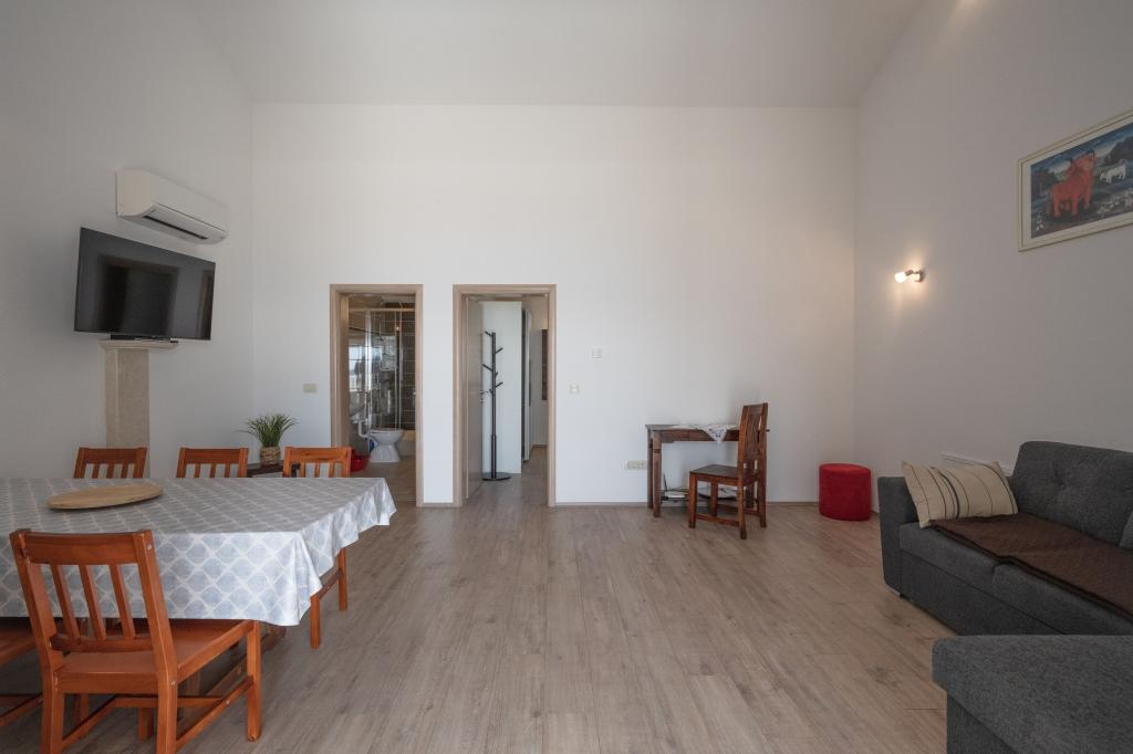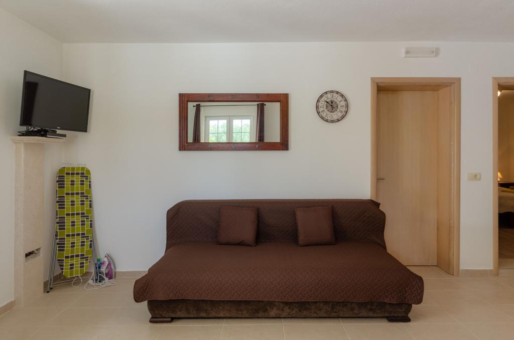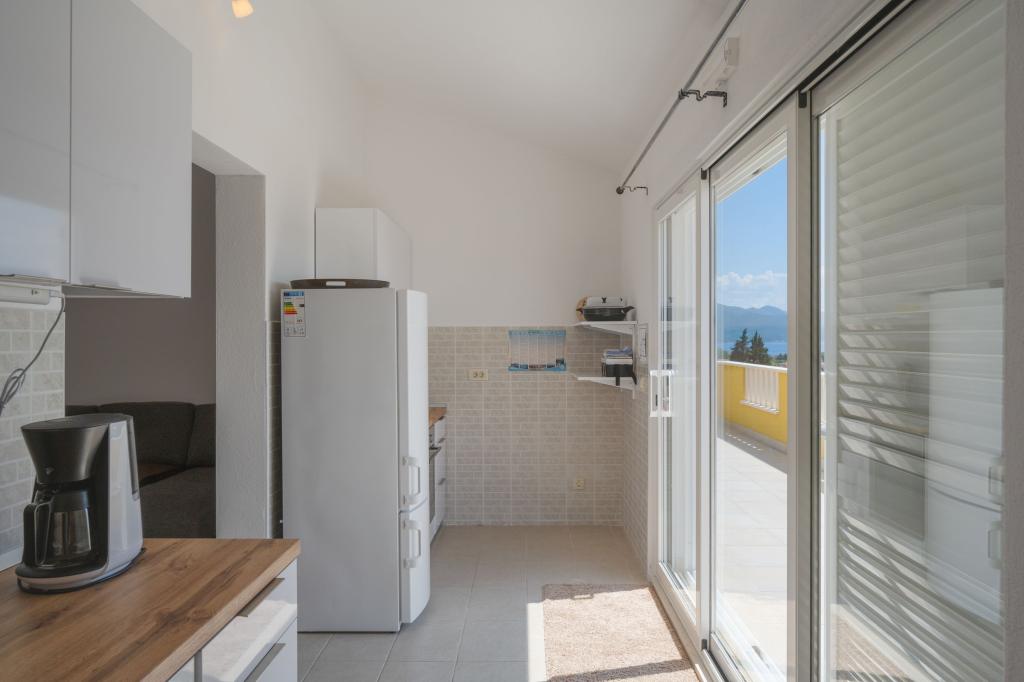 The apartment is on the ground floor and has a bedroom with a double bed, a living room with a sofa bed, a fully equipped kitchen with a large refrigerator, and a bathroom with a large shower. The property surrounding the apartment is large, with plenty of parking. There are olive trees, which I parked under. I found the apartment very well-maintained, clean, and new. You feel right at home. There's a TV with Netflix and YouTube. Our apartment was tucked away in the building and offered us plenty of privacy. The views from the apartment are incredible. The beach at the port is relatively close, but the return trip up the stairs is a bit longer. For those who prefer a leisurely drive, you can also get there by car. Lidia is very communicative. I spoke Croatian via WhatsApp, but on-site, it was a mix of Polish, Croatian, and English. We are very pleased. Greetings, Lidia See you