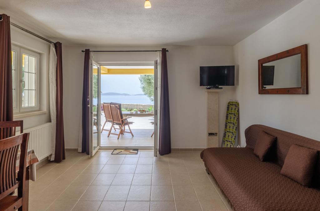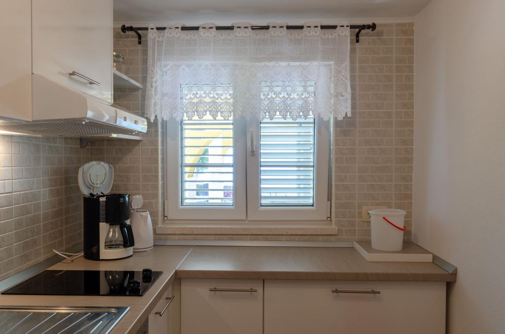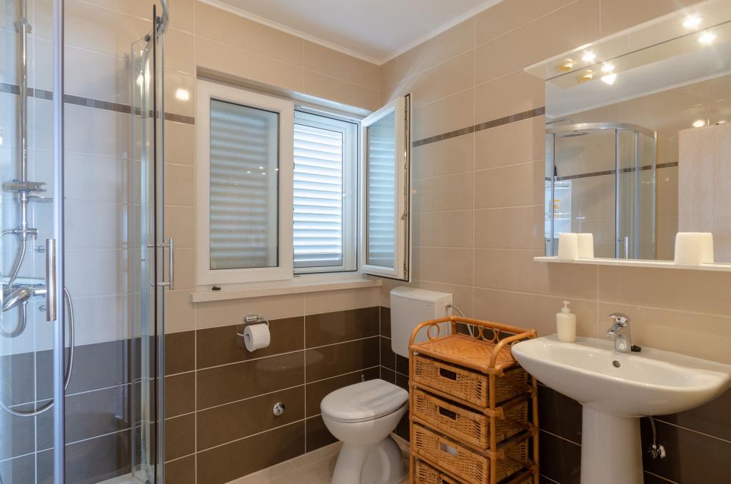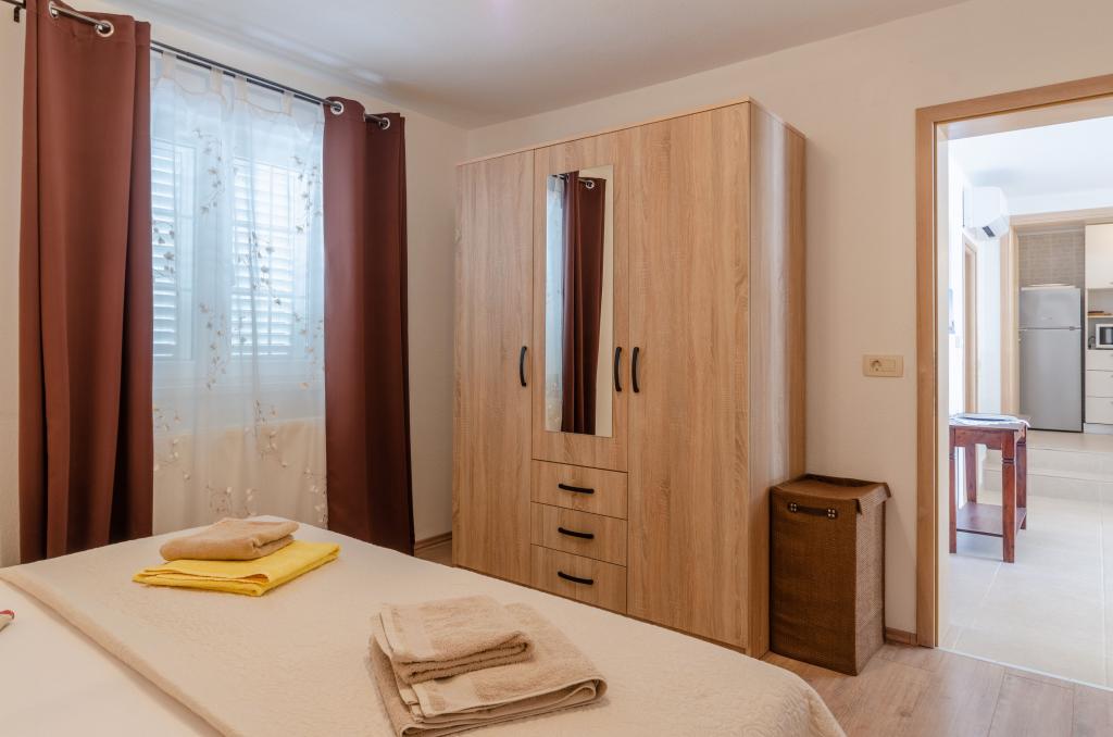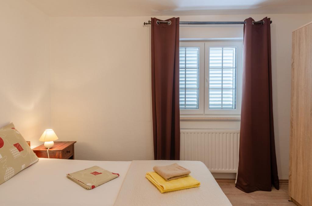 The apartment is on the ground floor and has a bedroom with a double bed, a living room with a sofa bed, a fully equipped kitchen with a large refrigerator, and a bathroom with a large shower. The property surrounding the apartment is large, with plenty of parking. There are olive trees, which I parked under. I found the apartment very well-maintained, clean, and new. You feel right at home. There's a TV with Netflix and YouTube. Our apartment was tucked away in the building and offered us plenty of privacy. The views from the apartment are incredible. The beach at the port is relatively close, but the return trip up the stairs is a bit longer. For those who prefer a leisurely drive, you can also get there by car. Lidia is very communicative. I spoke Croatian via WhatsApp, but on-site, it was a mix of Polish, Croatian, and English. We are very pleased. Greetings, Lidia See you