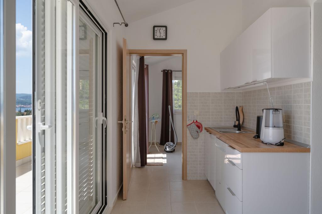 Great apartment. Spacious, clean, well-equipped. Large comfortable beds, a terrace with deckchairs surrounded by well-kept vegetation, a beautiful view of the sea. There is peace and quiet around. Nobody goes this way, nobody walks. It is like in paradise. Access to the apartment is slightly uphill or by stairs, but it is short and fatigue-free. But by moving away from the center, we gain an amazing, soothing atmosphere, view and peace. The hostess is very polite and hospitable. He cares about everything, thanks to which there are such and no other conditions. We spent 2 weeks here and would love to stay longer. The best accommodation we have had in Croatia for an affordable price.