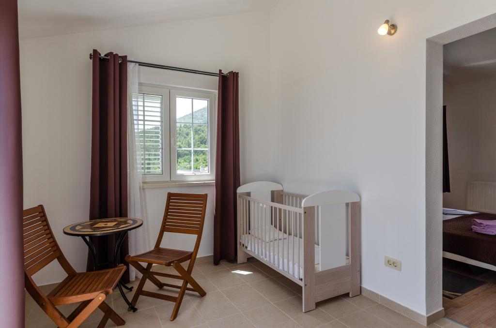 I recommend the Jomi apartment located in a quiet part of Orebic. We stayed in this apartment in two families (8 people). Beautifully furnished, comfortable and large apartment. A great advantage was a separate bathroom for each of the 3 bedrooms. Amazing sea view from the terrace. On a part of the terrace there is a shaded pergola, which allows you to hide from the sun. It took us 6 minutes to go down to the sea (going down the stairs). The hosts were very nice, helpful in every matter. We spent an unforgettable holiday there.