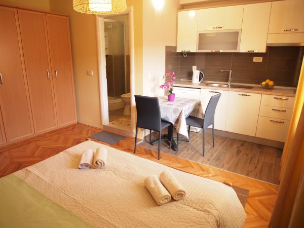 The facility is located approx. 70 m from the sea and sandy beaches, ideal position of the house, in the city center. A quiet place. All apartments have air conditioning, satellite TV, WI-FI (Internet). Close to shops, bakeries ...