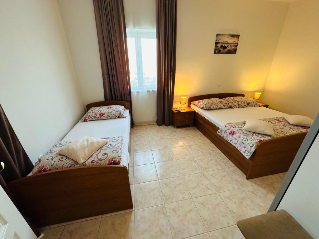 Fully equipped apartment, located first row to the sea. The facility is located 20 meters from the beach and 10 minutes walk to the center.