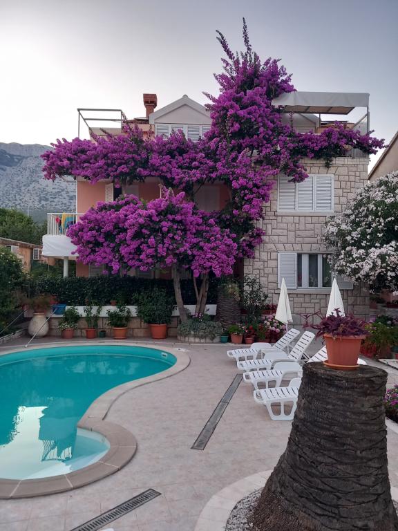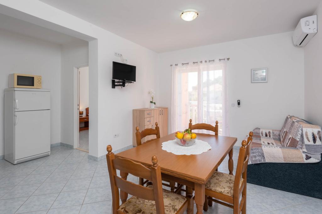 "Villa Melita" is located right by the sea and along a quiet promenade. This place is especially suitable for everyone who needs a break. The house has a beautiful garden with Mediterranean vegetation where there is a 32m2 swimming pool with 14 sun loungers. A barbecue is also at your disposal. Our private parking for each apartment is also nearby. All our apartments have air conditioning, free WiFi, satellite TV, a fully equipped kitchen, a bathroom and a private terrace. Bath towels and bed linen are also included. The house is within walking distance of several restaurants, cafes, shops and bakeries for all your daily needs. Most importantly, the main town beach Trstenica is only 40 meters away.