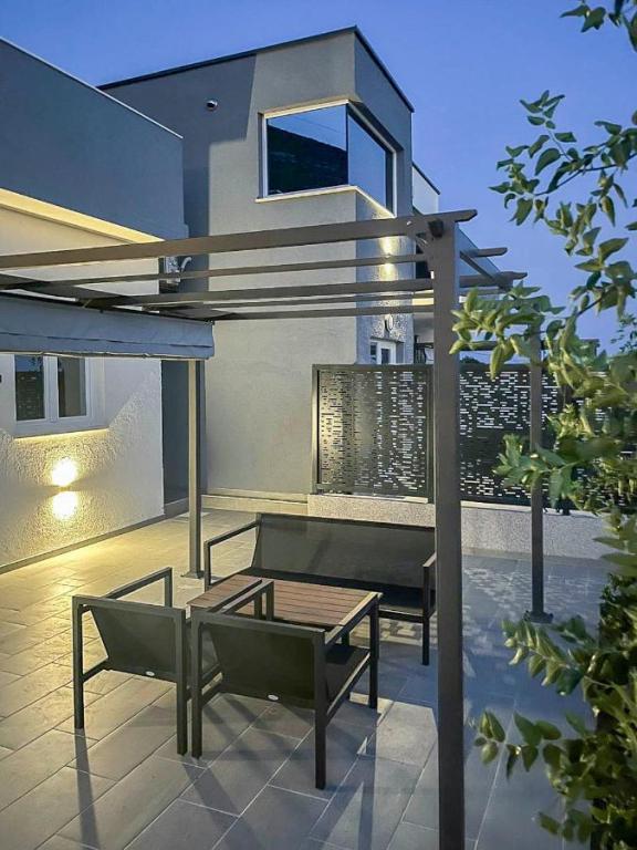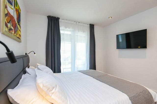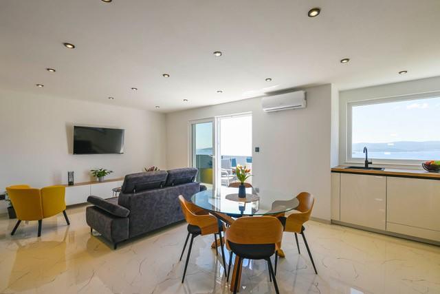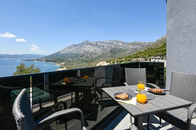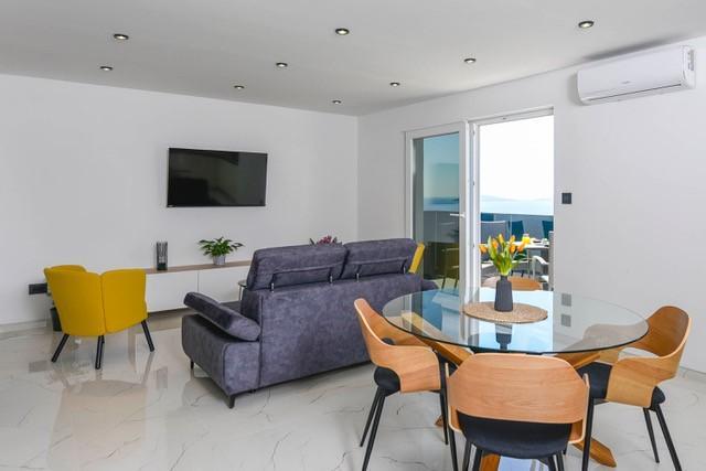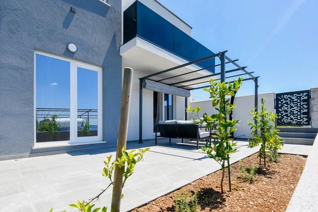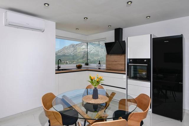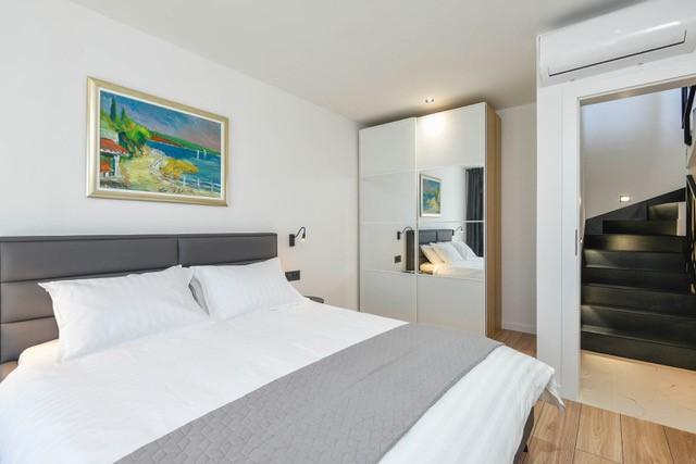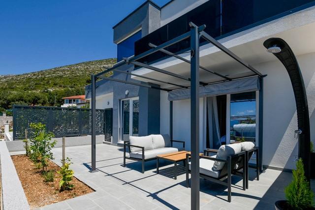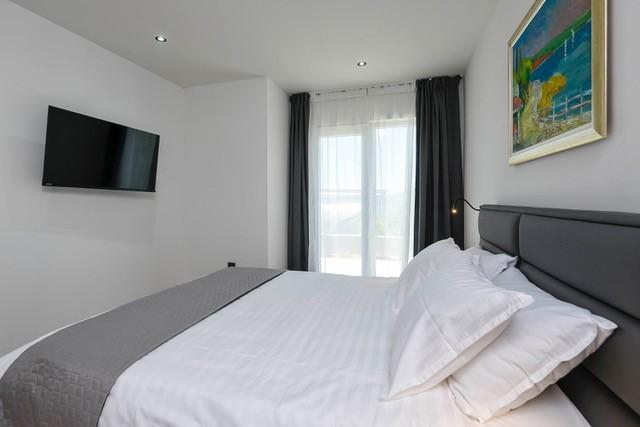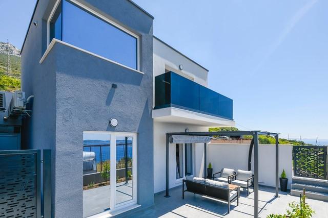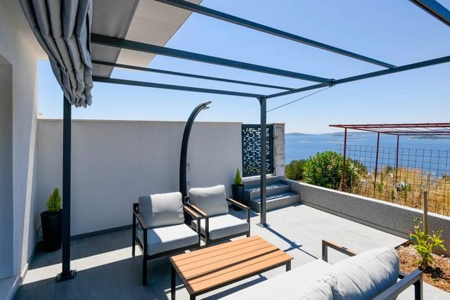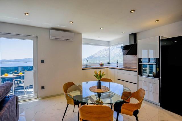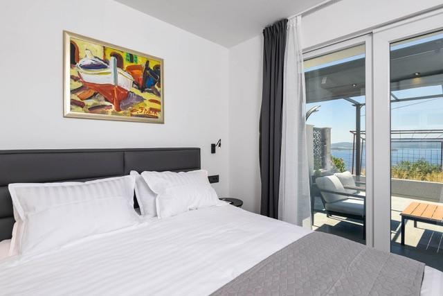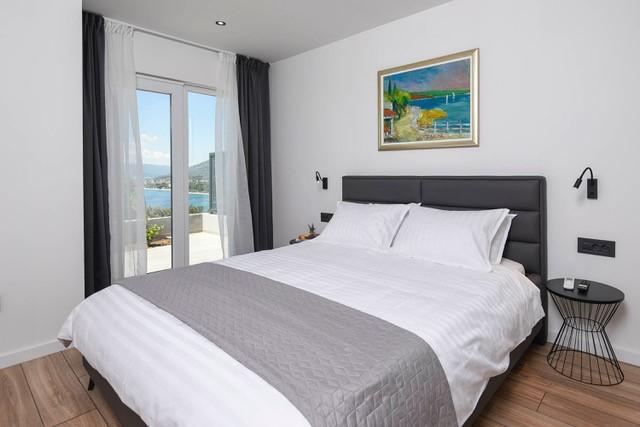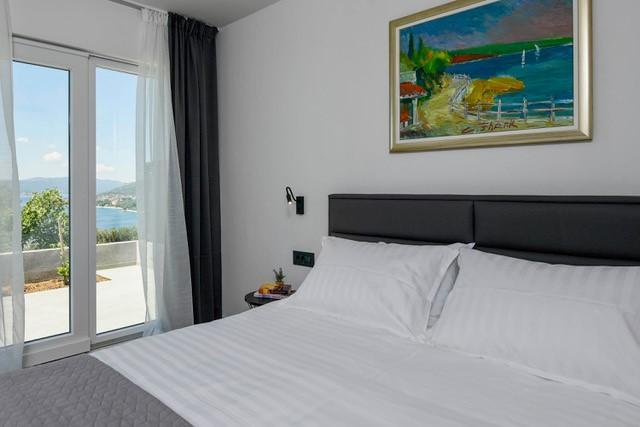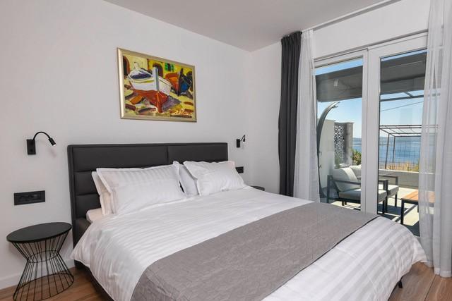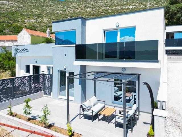 Modernly equipped two-story villa with a beautiful sea view. It is located in the small village of Radešići, a 5-minute drive from Orebić. On the ground floor there are 2 air-conditioned bedrooms with TV and a bathroom. In front is a spacious terrace with lounge furniture and an outdoor shower. On the 1st floor there is an air-conditioned kitchen, dining room and living room (open space concept), bathroom and balcony with a view of Korčula and the Pelješac Channel. Guests have a free parking space.
