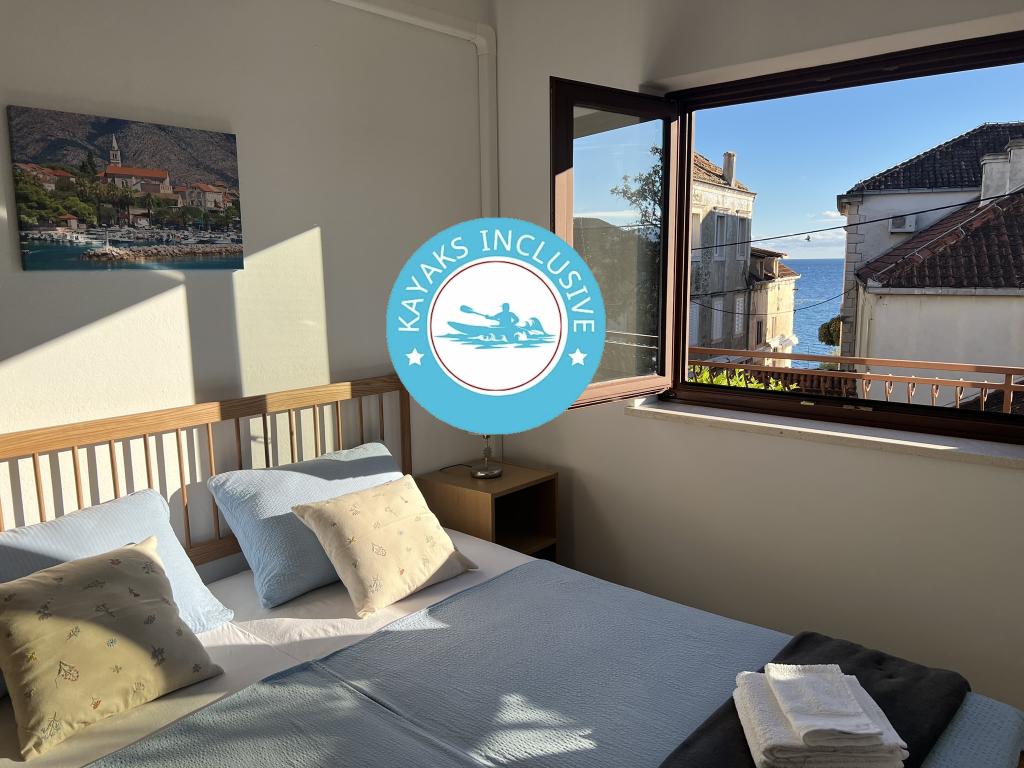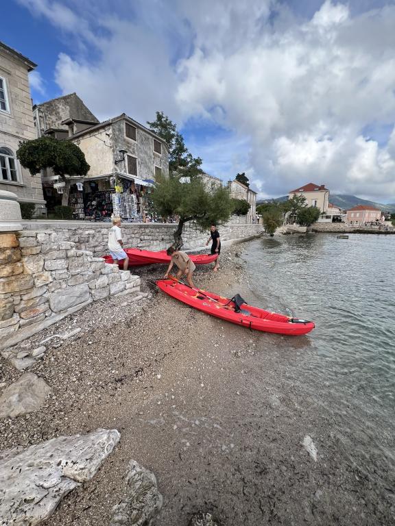 86 STEPS to the beach - down stone steps, next to olive and lemon trees and overlooking the blue sea - Beach lovers will enjoy. EXCURSIONS Korčula, Mljet and the surrounding islands are within easy reach (Orebić Port is only 250m away) Enjoy the flavors of Mediterranean cuisine and Italian Dolce Vita, (all within a 300-meter radius) - FREE: Sea kayaks - Stand Up Paddle Boards - Umbrellas and Beach Mats. - WELCOME to the very CENTER of OREBIĆ and don't miss the opportunity for a perfect vacation. AND AS PICTURES say more than words - LOOK AT THEM and judge for yourself. - Accommodations - Fully air-conditioned - Wi-Fi - SAT-TV - Kitchen - Bathroom with shower - Private parking - Balconies with awnings against the sun - Bed linen and towels GRILL Our BBQ-Area and garden terrace surrounded by lemon trees is fully equipped, and a great place where you can prepare grilled fish or meat.