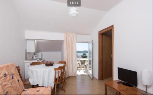 Very clean apartment with a small kitchen. Stunning view over Korcula from the balcony . The villa is facing the sea (just 5 meters across the street) with a small beach with clean cristal water. If you are looking for a relaxing and quiet holiday this is the right place for you. Ivo and Maria are very good hosts.