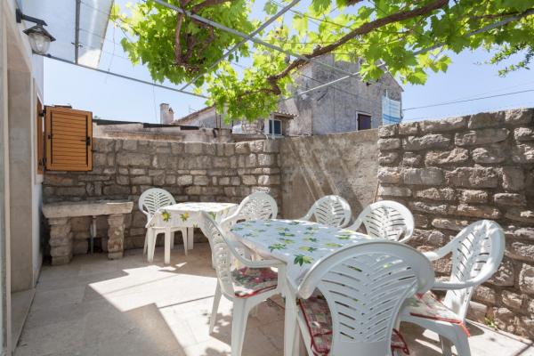 Cosy and simple, equipped with everything you need, with a view over the rooftops of Osor and oleanders on the garden. Garden cozy and natural, sheltered by beautiful houses and stone wall with vine pergola and beautiful oleander. Very nice to relax around the table or on the lawn. Viskov The family has always been very courteous, helpful and friendly. Osor is beautiful and fascinating, with its history and with a nice beach just five minutes from the house!