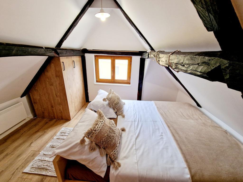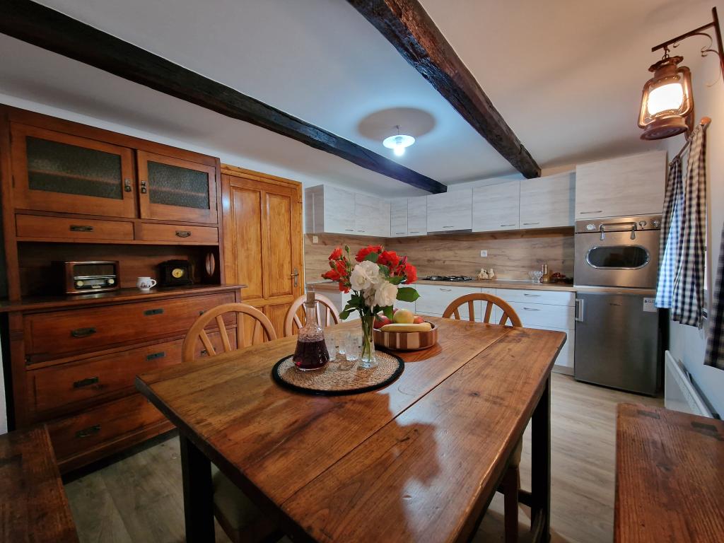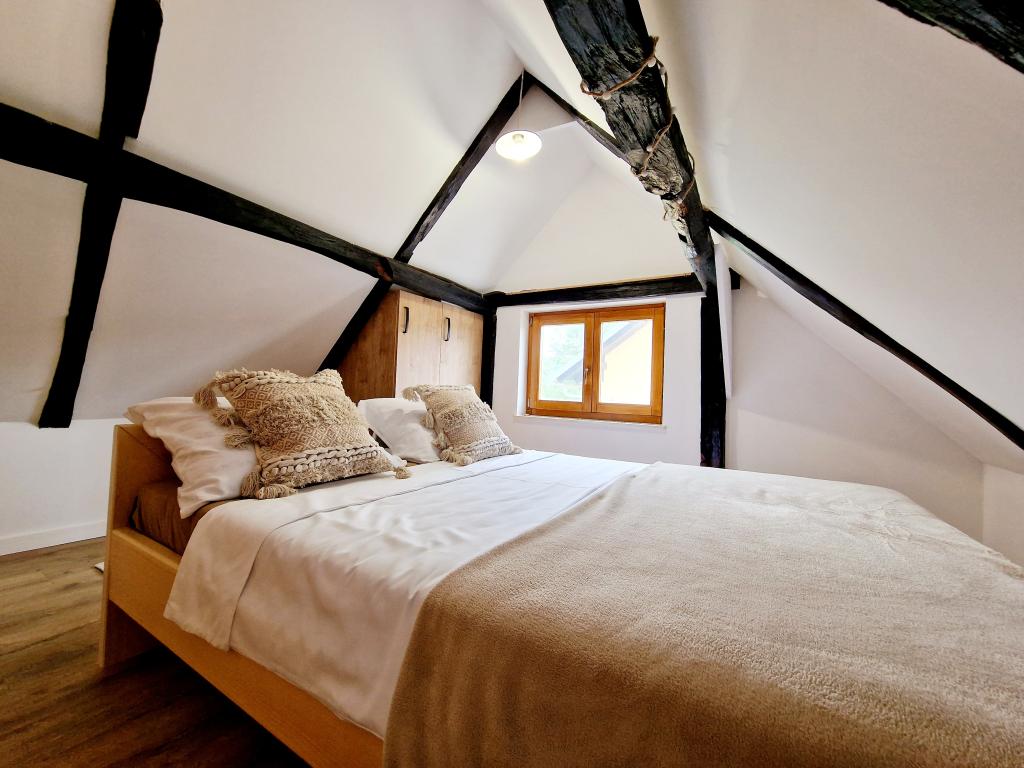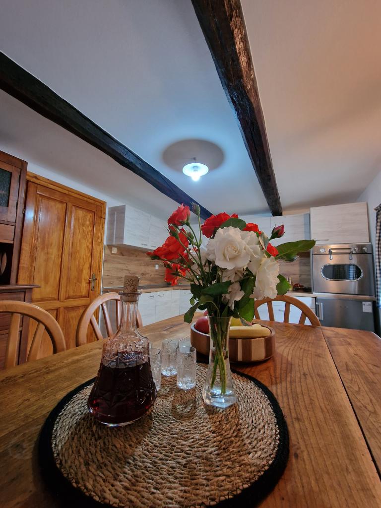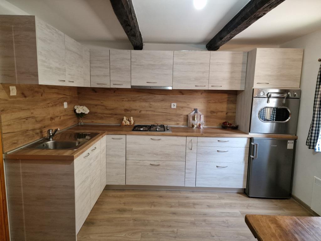 Native holiday house from 1857. it has been restored for an idyllic rest and enjoyment of our dear guests. It is located in the small village of Vuketić, in untouched nature, on a hill, where peace, silence, green forest and vineyards are intertwined. The house can accommodate 4+2 guests. On the ground floor there is a living room, a dining room and a bathroom with a central part and a restored bread oven. There are 2 bedrooms on the first floor, and in the green garden of the house you can barbecue and enjoy nature. It is located on the border with Slovenia in the Nature Park Žumberačka-Samoborsko gorje, 11 km from Metlika (SLO), 14 km from Ozlje and 24 km from the peak of Sveta Gera - 1178m above sea level marks the highest peak of Žumberačka gora. Only 2 km from the house is the central village of Vivodina with the church of St. Lovra as a historical monument. The region is known for its viticulture and winemaking, it is abundant with excellent and award-winning wines, but also with the gastronomic delicacy of lamb on a spit at the well-known restaurateur of the Frlan family.