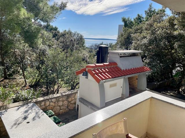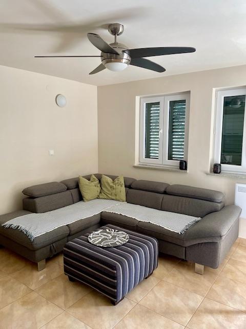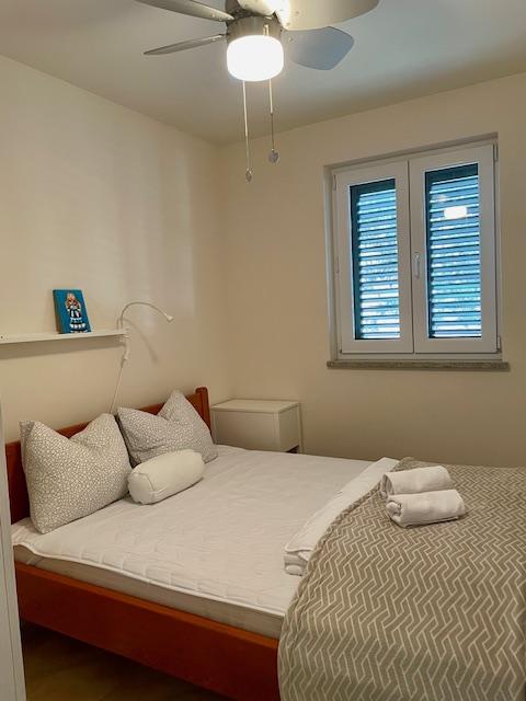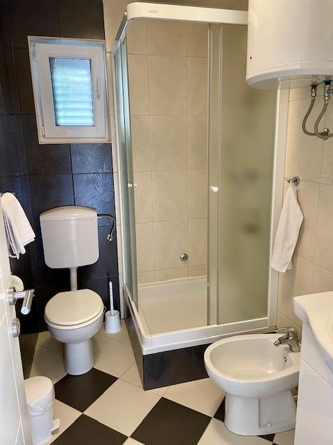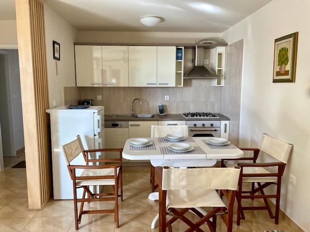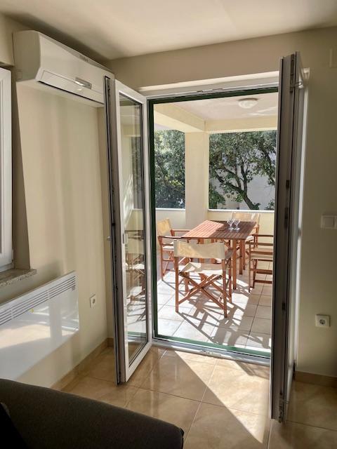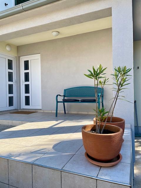 Nice apartment on the ground floor of the house with a sea view. The terrace (10m2) is covered. Guests can use a yard with a large table for socializing, a brick barbecue and an outdoor shower. In the immediate vicinity are the beach, market, cafes and restaurants. Free parking for one car is provided in the yard of the house, during the stay. The town of Mandre is ideal for a family holiday with numerous festivals during the summer months, a long lungo mare promenade and other entertainment. The apartment owners who live on the top floor of the house are available for possible questions. For all other information, feel free to call.