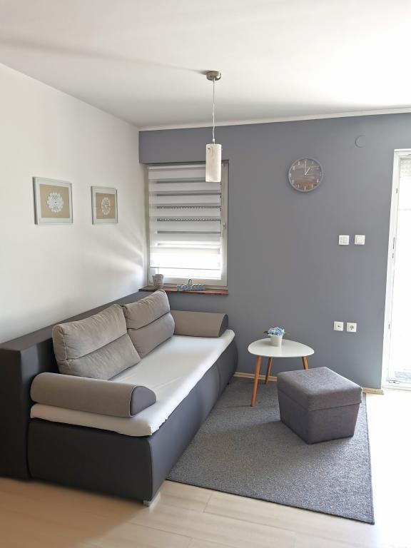The facility is located in a quiet place Mandre on the island of Pag, 100 meters from the beach and 500 meters from the center and restaurants. Comfortable, air-conditioned and equipped apartment with free WIFI, with terrace overlooking the sea, barbecue and parking. The beaches are rocky, pebble and sandy and have clear sea. Visit us and spend a pleasant and relaxing holiday in Mandre.