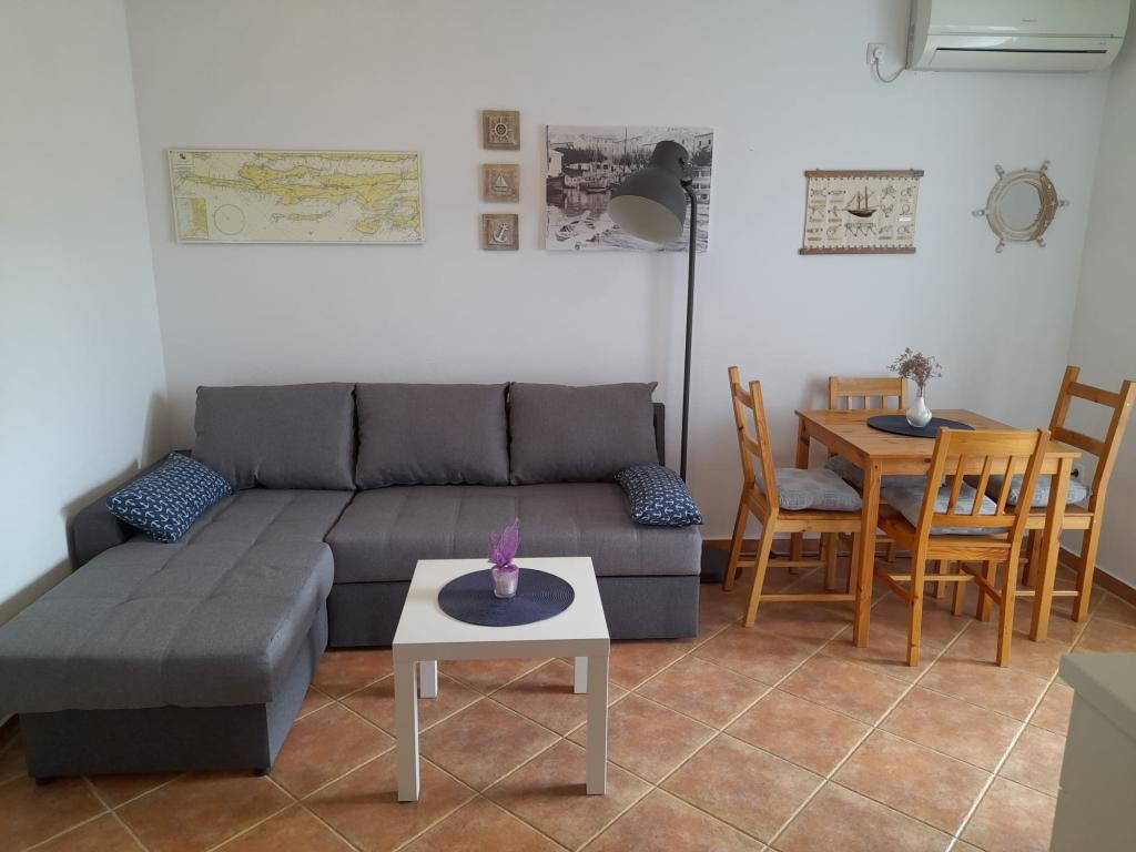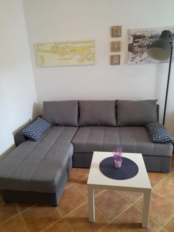 Fully equipped apartment in a quiet place Mandre, on the island of Pag. Close to the beach, parking, air conditioning, grill, sea view, mosquito nets, wifi, satellite TV, tv.