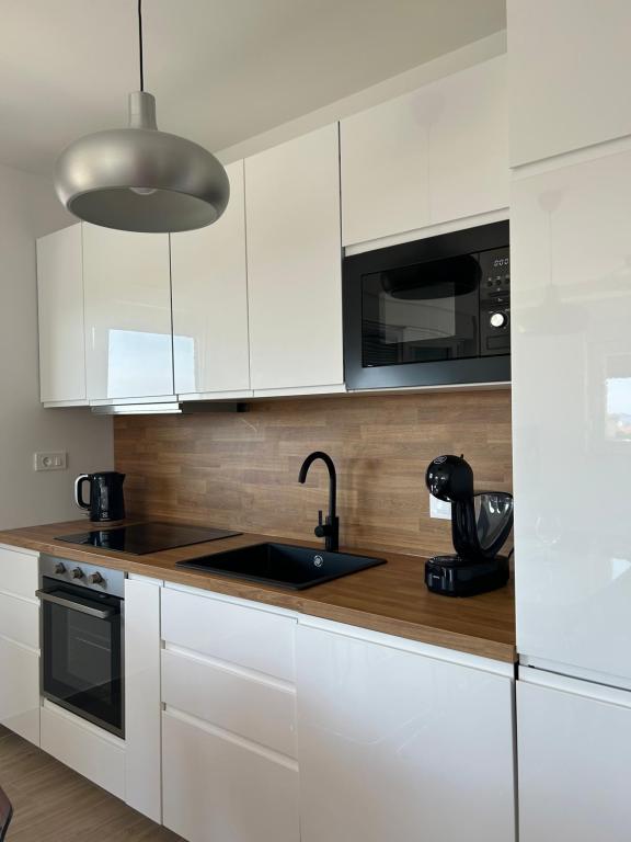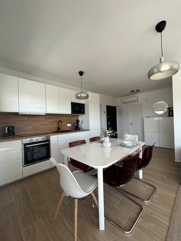 The apartment is new, comfortably equipped, spacious, perfect for a vacation just 100 meters from the beach. The kitchen has a coffee maker, kettle, microwave, oven, dishwasher, large satellite TV and washing machine. The street is neat and quiet. The sea is clean and warm. Perfect for a vacation. We recommend.