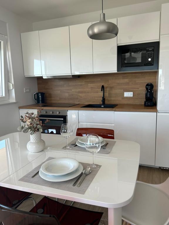 Newly renovated apartment, fully equipped kitchen with appliances. Air-conditioned space. Two large bedrooms with two very comfortable beds, comfortable mattresses and pillows. A large terrace to enjoy with a sea view, most beautiful in the morning for drinking coffee and in the evening for relaxing after swimming. Large living room, large TV with satellite. The beach and the sea are really nearby. Recommended to everyone.