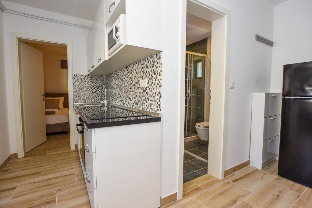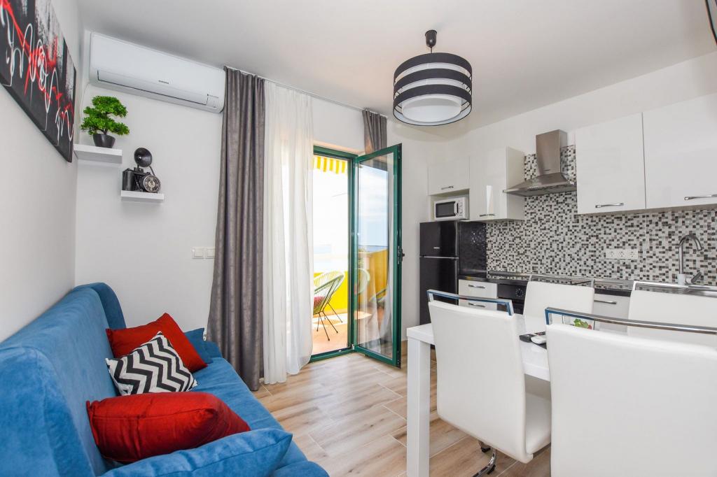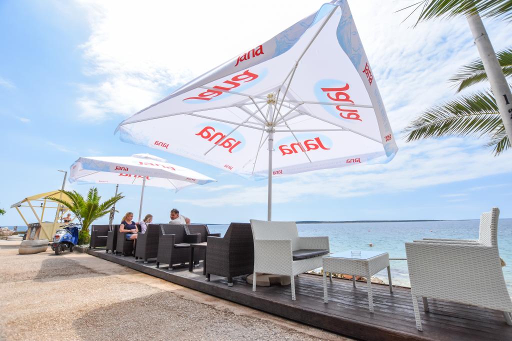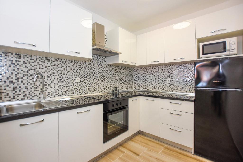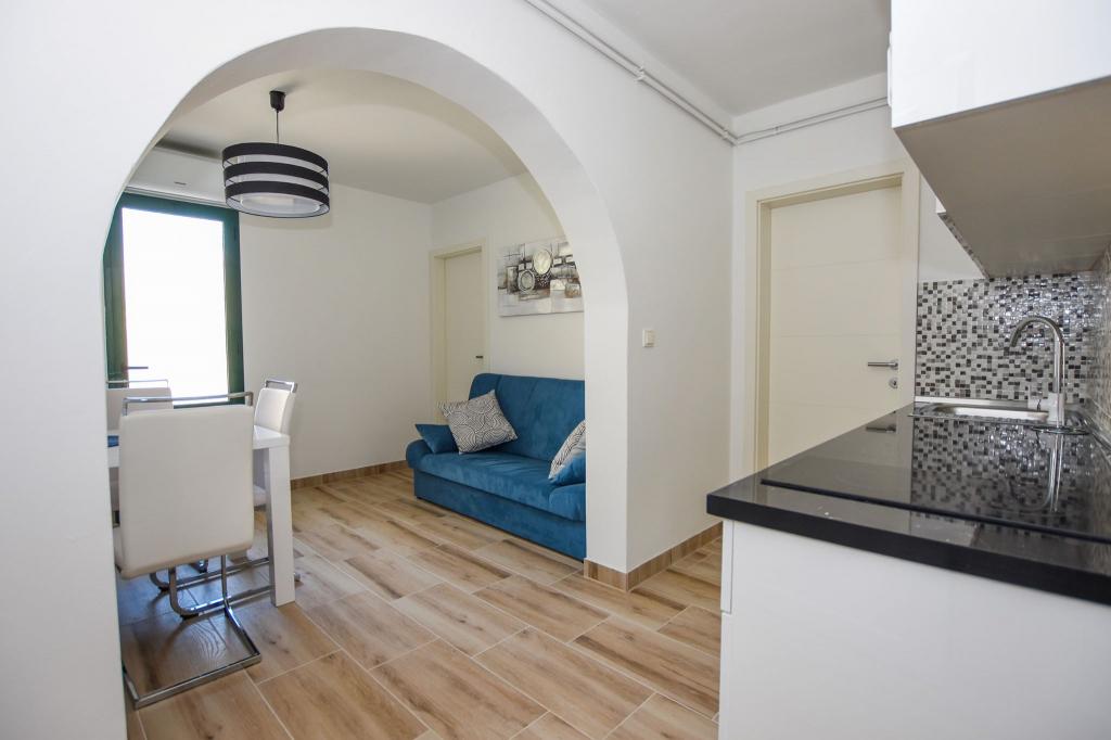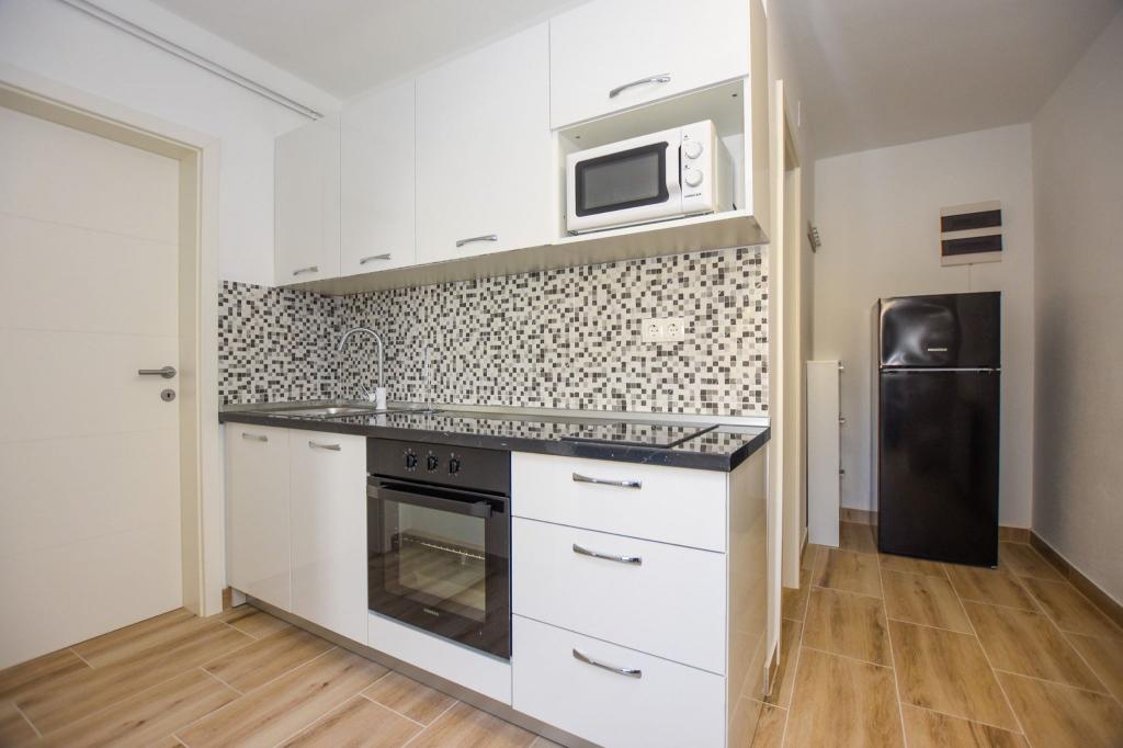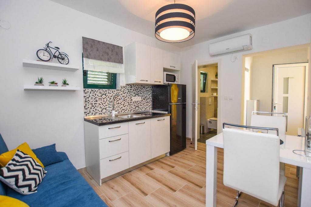 6 NEW MODERNLY DECORATED apartments, all units include air conditioning, private bathroom with shower and kitchen with dishwasher, refrigerator, toaster and kettle, as well as a common room for washing, drying and ironing, free Wi-Fi, led TV, coffee machine, cot for children. Free private parking within 50 meters. A terrace is available for some units. Within a radius of 20 meters there are beautiful beaches, cafes, children's playground, restaurants, shops and a playroom.