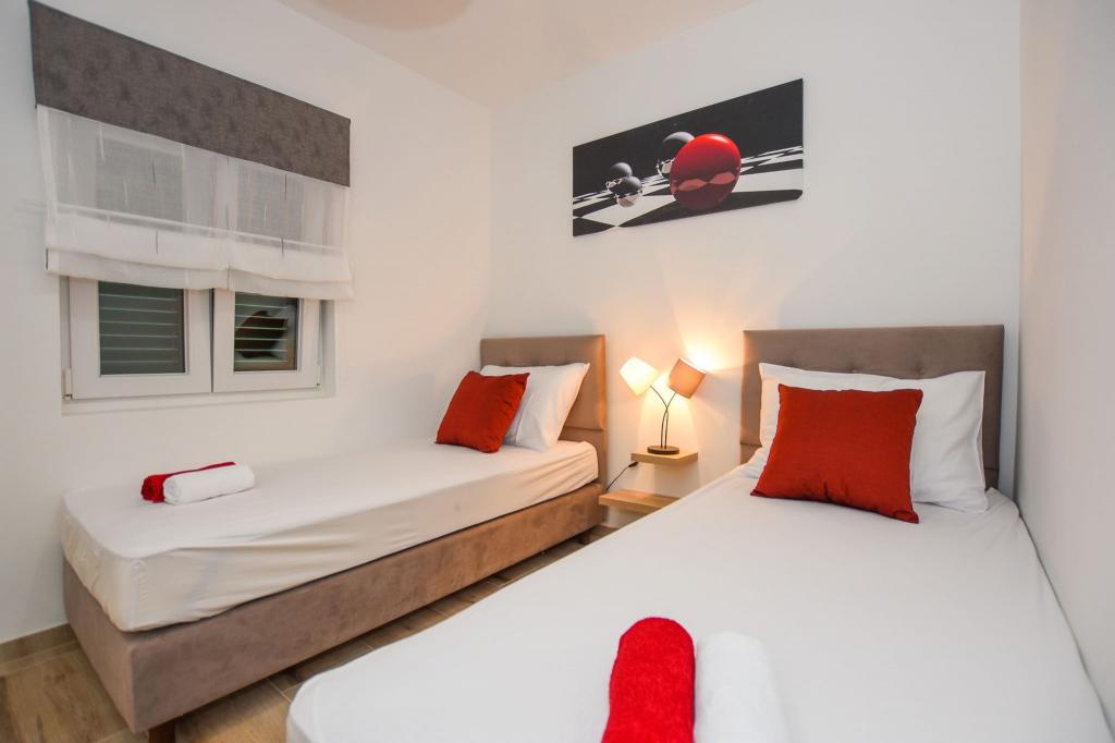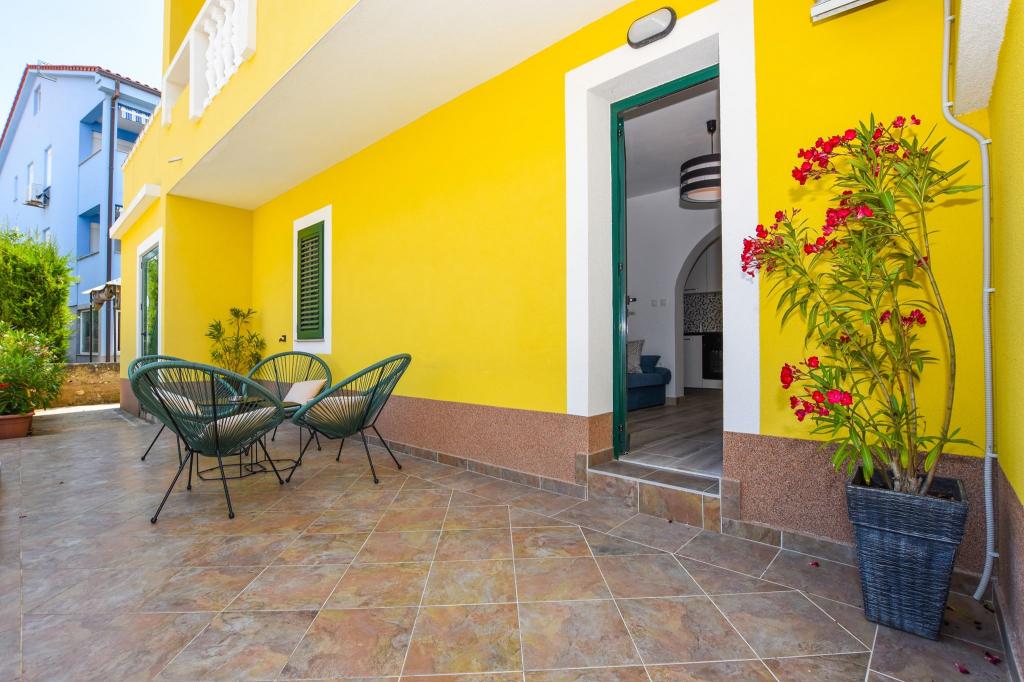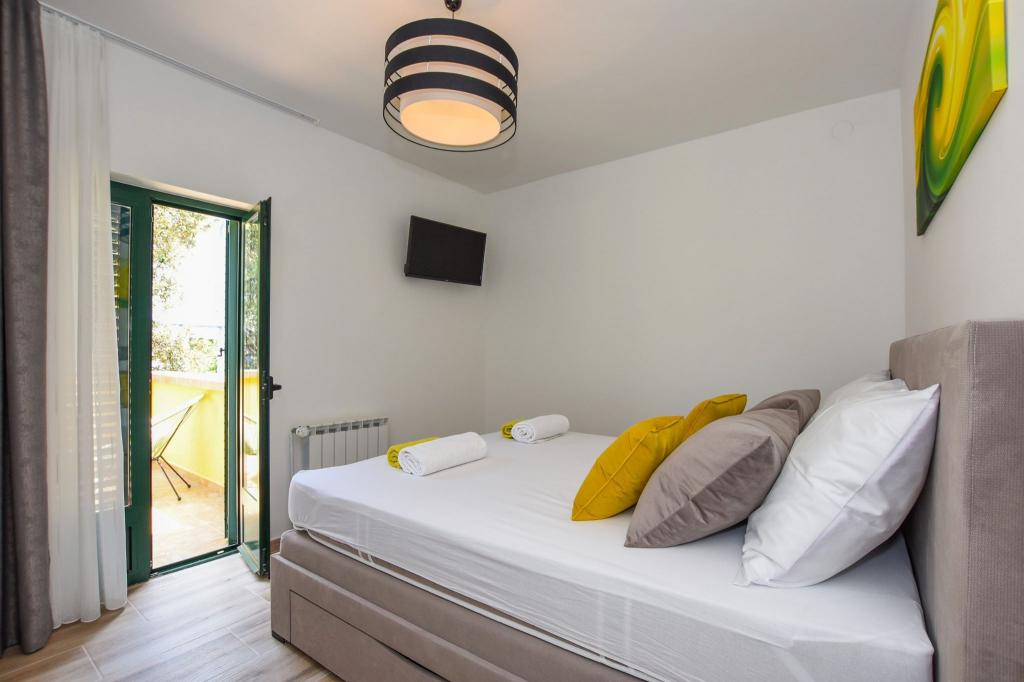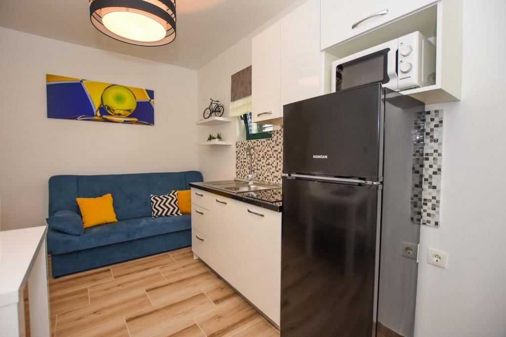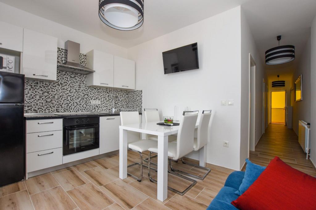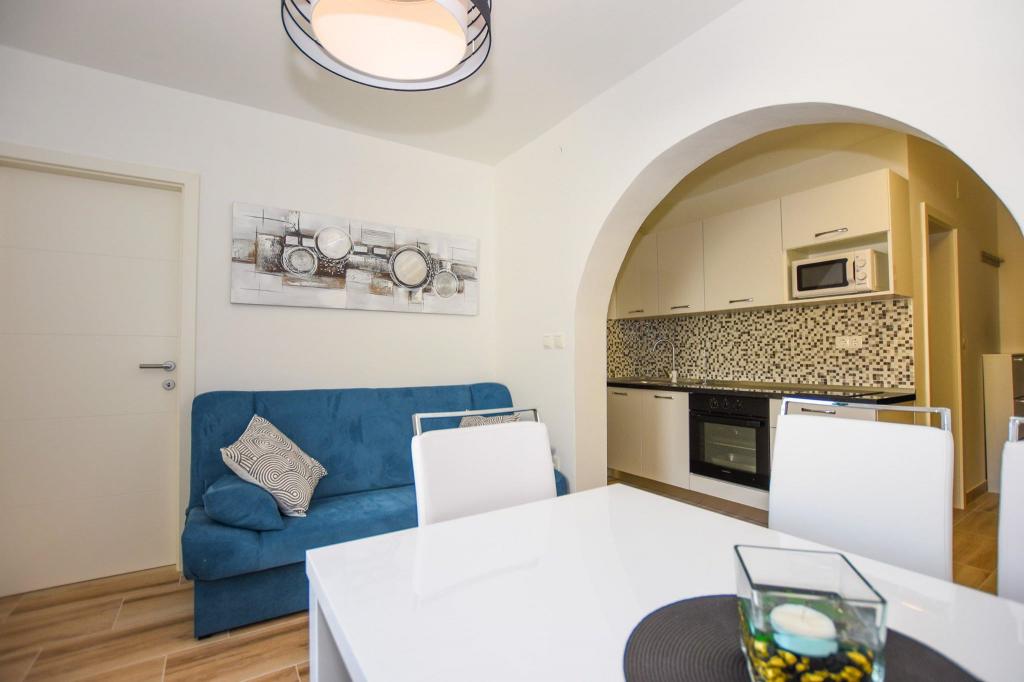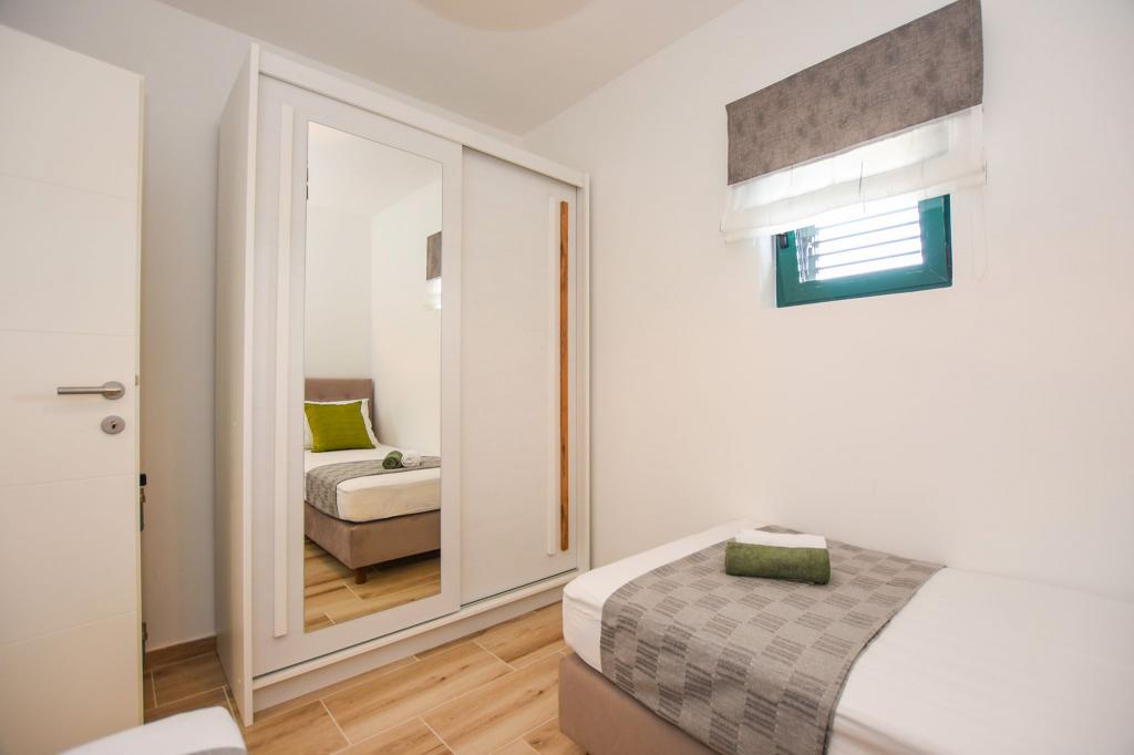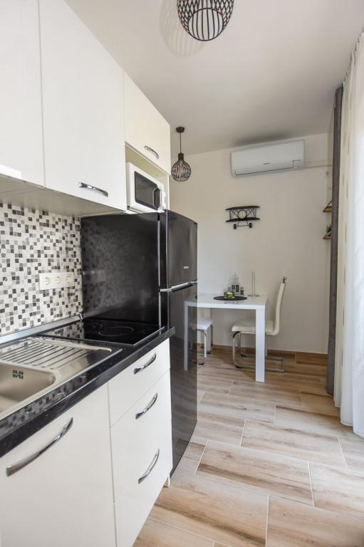 6 NEW MODERNLY DECORATED apartments, all units include air conditioning, private bathroom with shower and kitchen with dishwasher, refrigerator, toaster and kettle, as well as a common room for washing, drying and ironing, free Wi-Fi, led TV, coffee machine, cot for children. Free private parking within 50 meters. A terrace is available for some units. Within a radius of 20 meters there are beautiful beaches, cafes, children's playground, restaurants, shops and a playroom.
