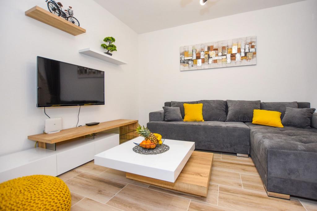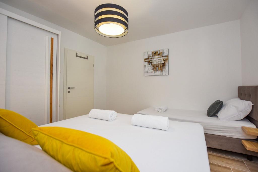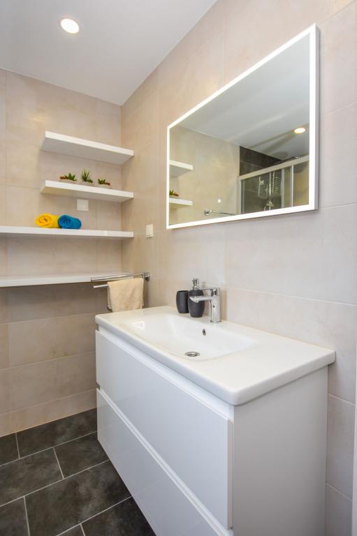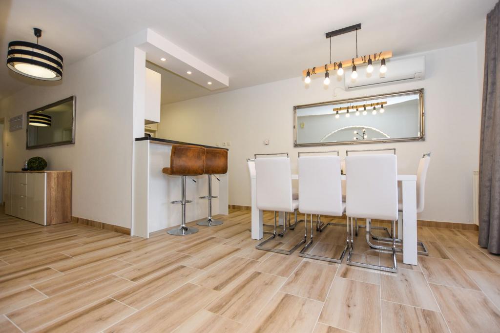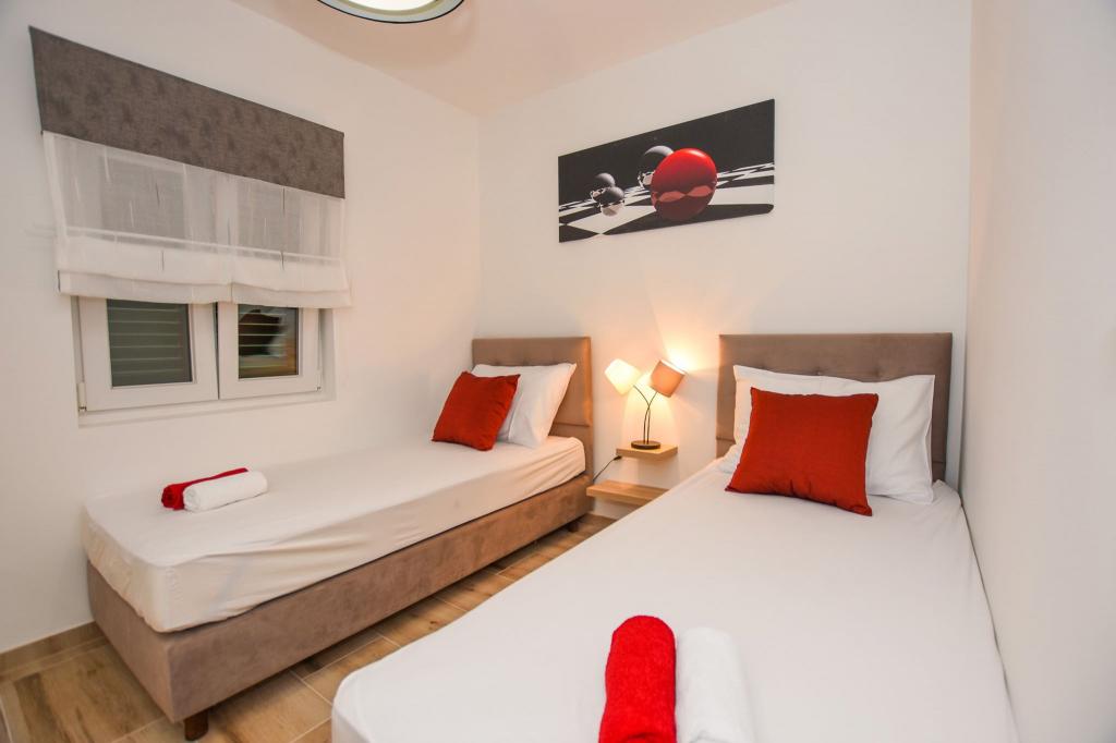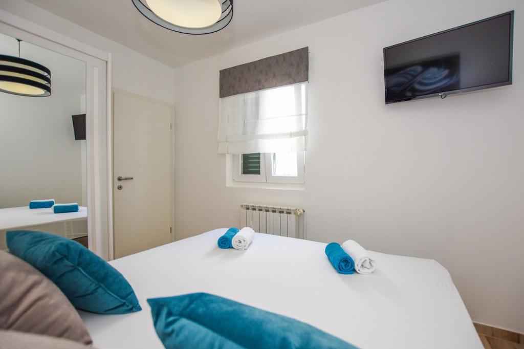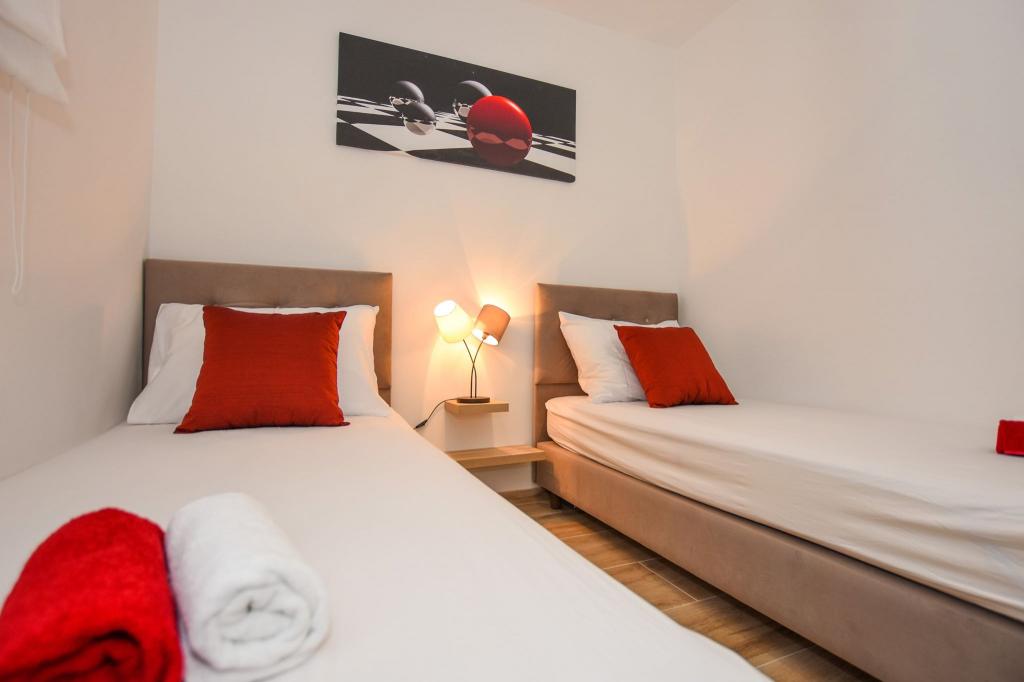 6 NEW MODERNLY DECORATED apartments, all units include air conditioning, private bathroom with shower and kitchen with dishwasher, refrigerator, toaster and kettle, as well as a common room for washing, drying and ironing, free Wi-Fi, led TV, coffee machine, cot for children. Free private parking within 50 meters. A terrace is available for some units. Within a radius of 20 meters there are beautiful beaches, cafes, children's playground, restaurants, shops and a playroom.