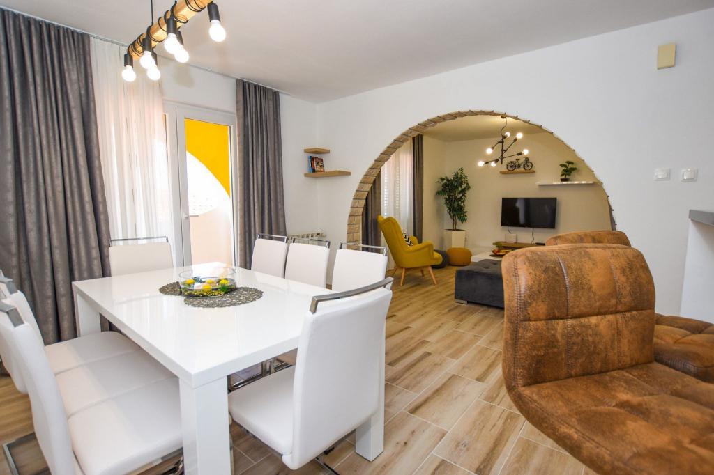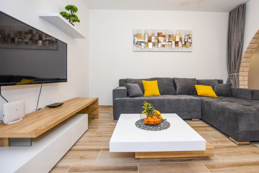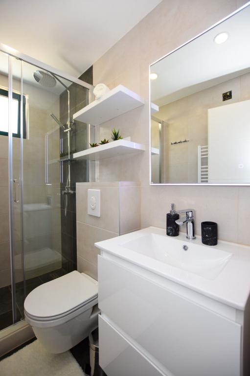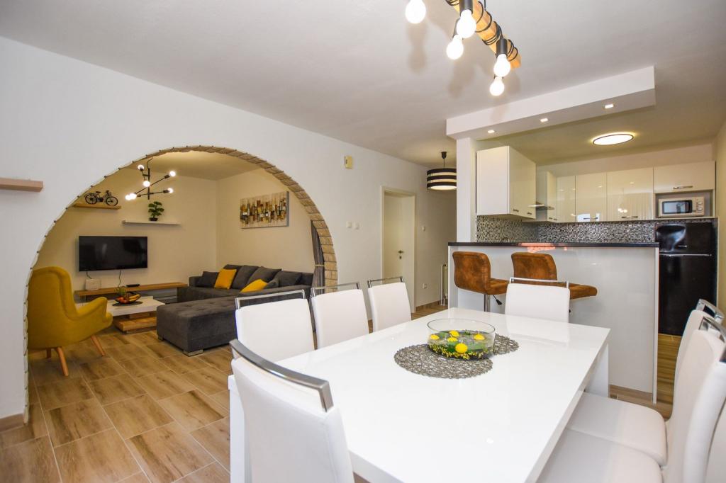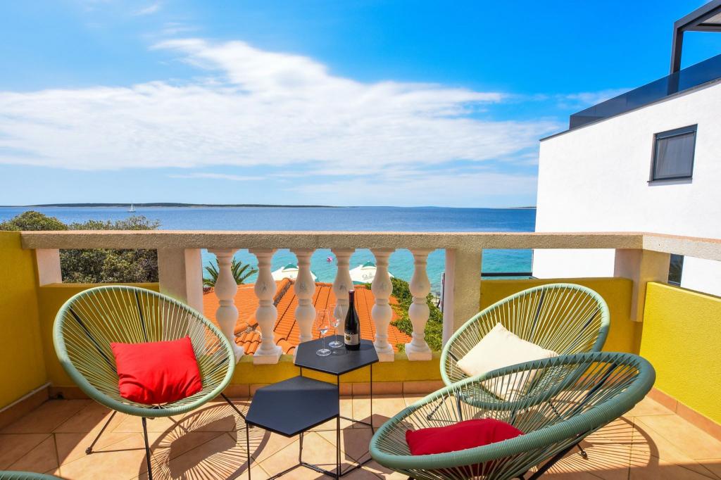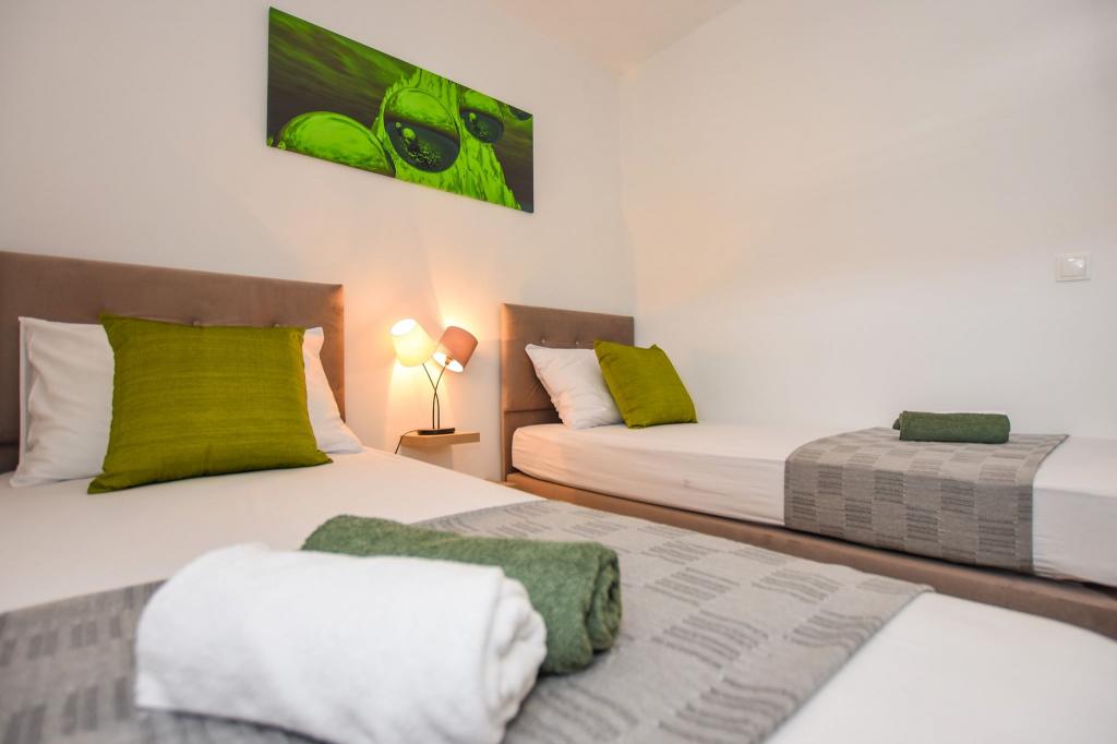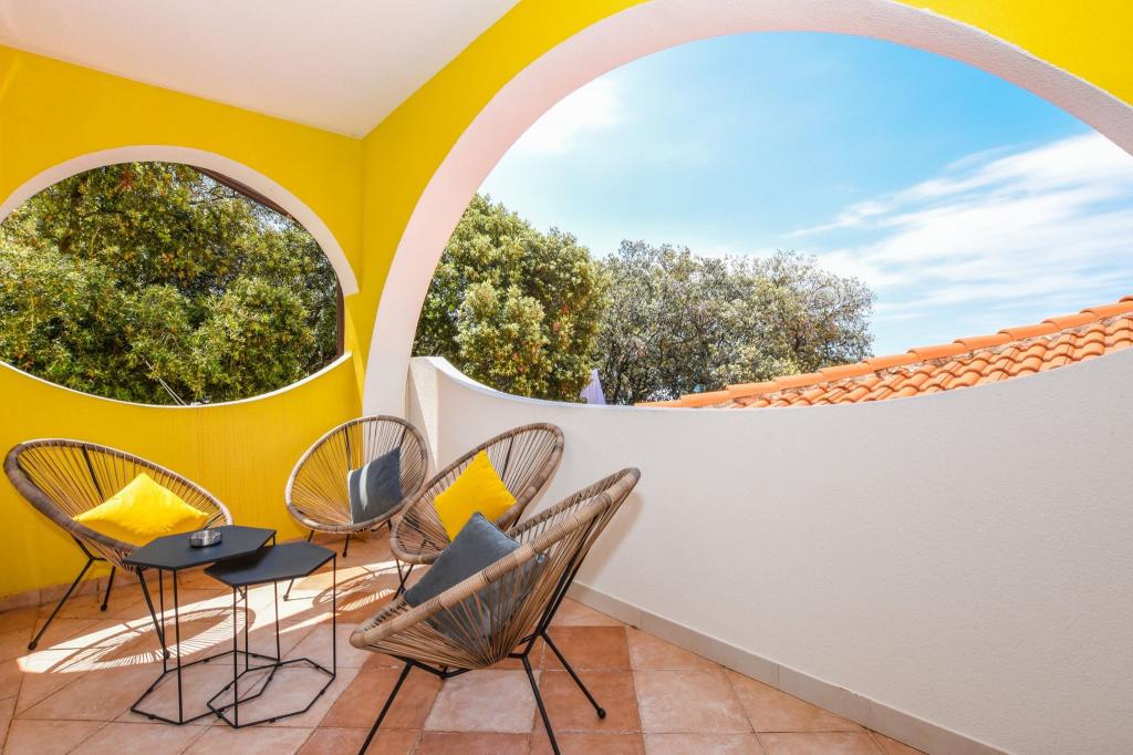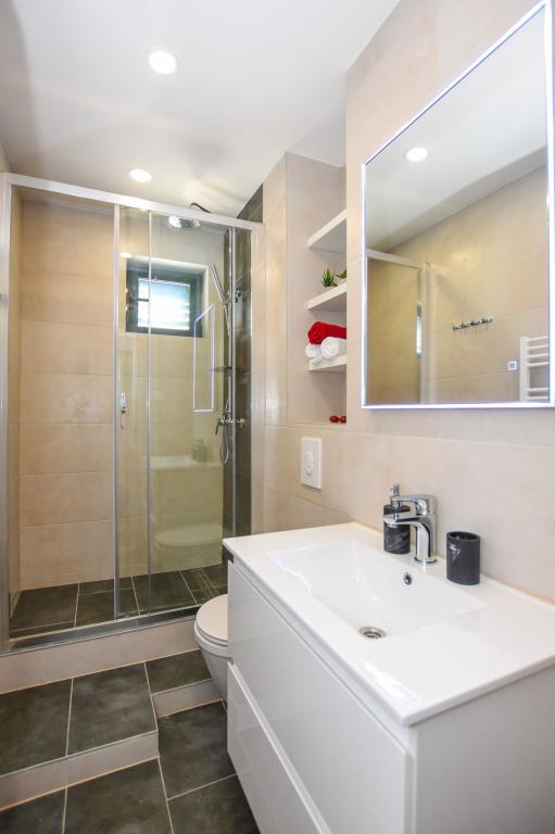 6 NEW MODERNLY DECORATED apartments, all units include air conditioning, private bathroom with shower and kitchen with dishwasher, refrigerator, toaster and kettle, as well as a common room for washing, drying and ironing, free Wi-Fi, led TV, coffee machine, cot for children. Free private parking within 50 meters. A terrace is available for some units. Within a radius of 20 meters there are beautiful beaches, cafes, children's playground, restaurants, shops and a playroom.