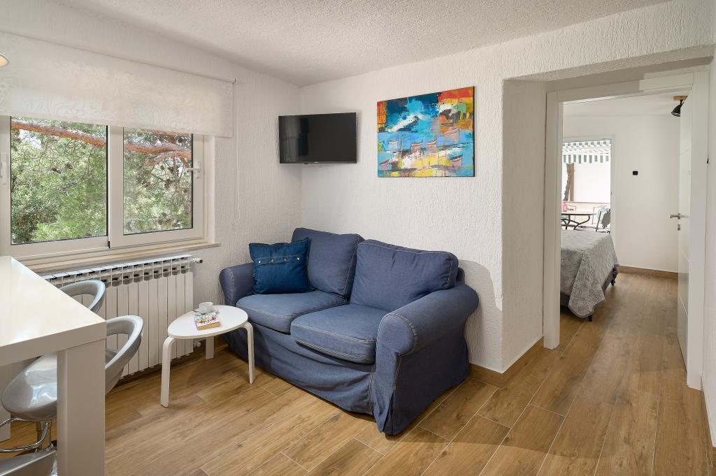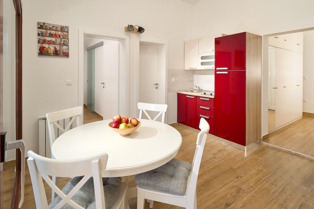 The apartment is located in the very center of the town across from the business center with many facilities. Also a market with local products located across the street.