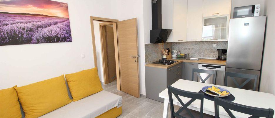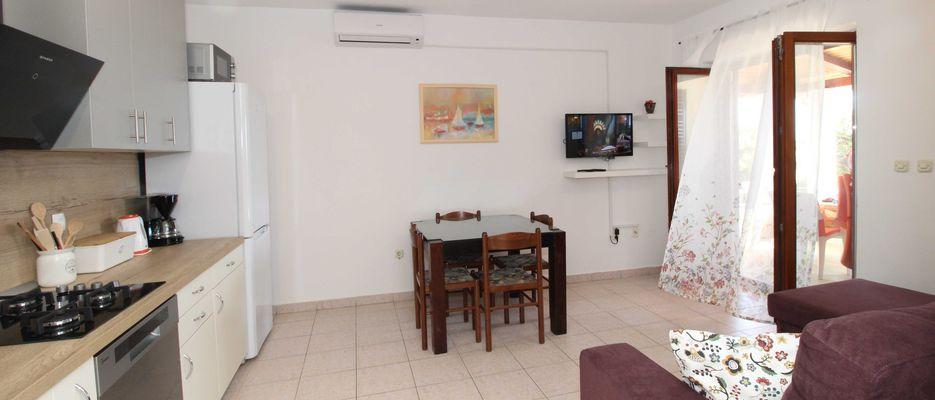 Our apartments are located 20 meters from the beach in the small town of Mandre, island of Pag. They are ideal for family vacations. The house is located in a quiet place with a large garden. Within the house is a large parking lot, barbecue. .