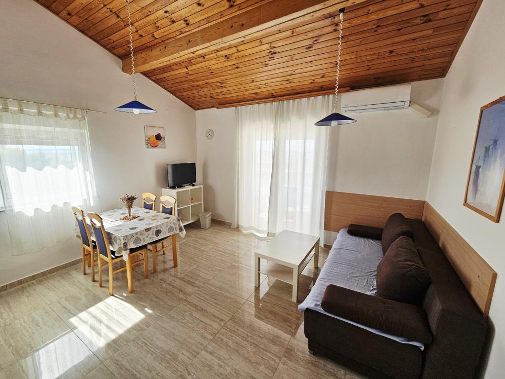 Many times we have stayed in this apartment and we were always very satisfied. It's always clean and tidy. Apartment is very comfortable, enough for two adults and 2 children. Beautiful sea view with large terrace, close to the beach, ideal for small children. Very clean water. The ratio of price, quality and location of the apartments is more than satisfactory. Everything you need for a good holiday is in Mandre and do not need to use a car. Very friendly owner and all hosts.We will come back.
